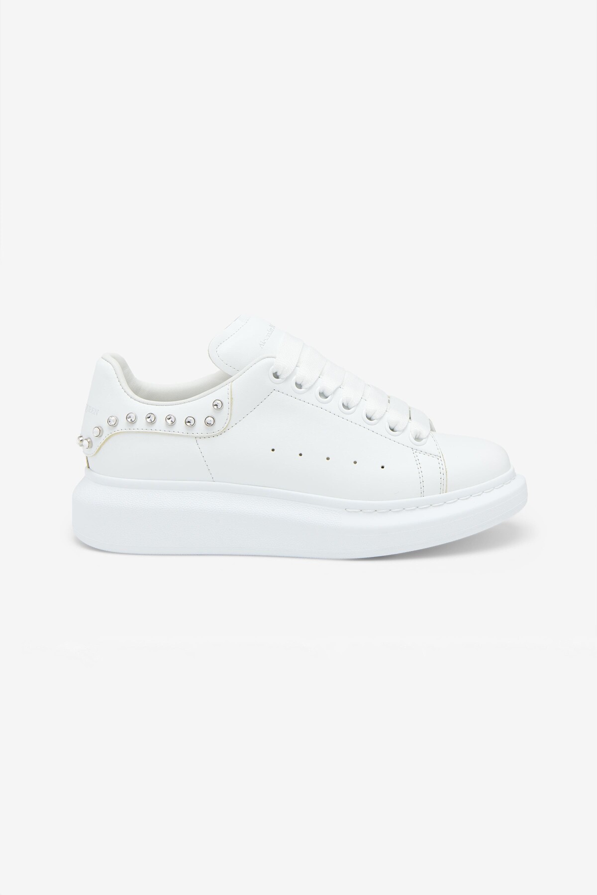İkonik ve hacimli platform tabanıyla anında tanınan bu sneakers, minimalist lüksü ve modern tasarımı bir araya getiriyor. Üstün kaliteli dana derisinden üretilen pürüzsüz beyaz saya, yan kısımdaki perfore (delikli) detaylarla nefes alabilirlik sunar. Tasarımın en belirgin özelliği, topuk çevresini süsleyen parlak gümüş rengi zımba detaylarıdır. Bu İtalyan yapımı sneakers, imzası niteliğindeki kauçuk tabanıyla her kombine iddialı bir stil katacaktır.