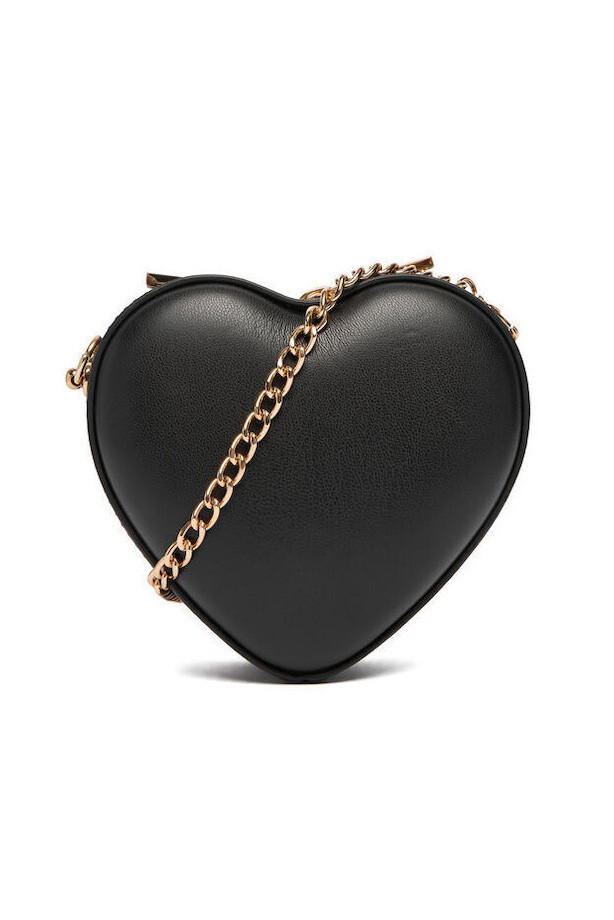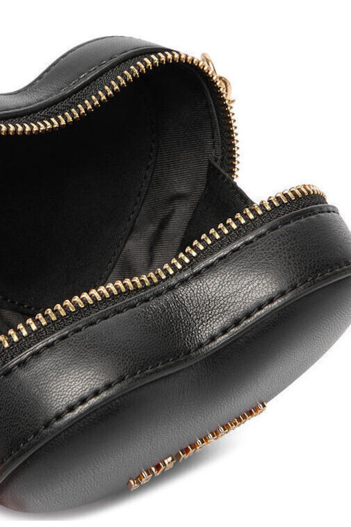 Romantik ve eğlenceli tasarımıyla dikkat çeken bu kalp formlu çanta, kombinlerinize sevimli ve iddialı bir dokunuş katıyor. Pürüzsüz dokulu siyah yüzeyi, ön kısımdaki parlak altın rengi metal harf detaylarıyla zenginleştirilerek şıklık kazanmıştır. Zarif altın rengi zincir askısı, çantayı omzunuzda veya çapraz olarak taşımanıza olanak tanır. Kompakt ve yapısal formuyla, gece dışarı çıkarken veya özel etkinliklerde stilinizin en dikkat çekici parçası olmaya adaydır.