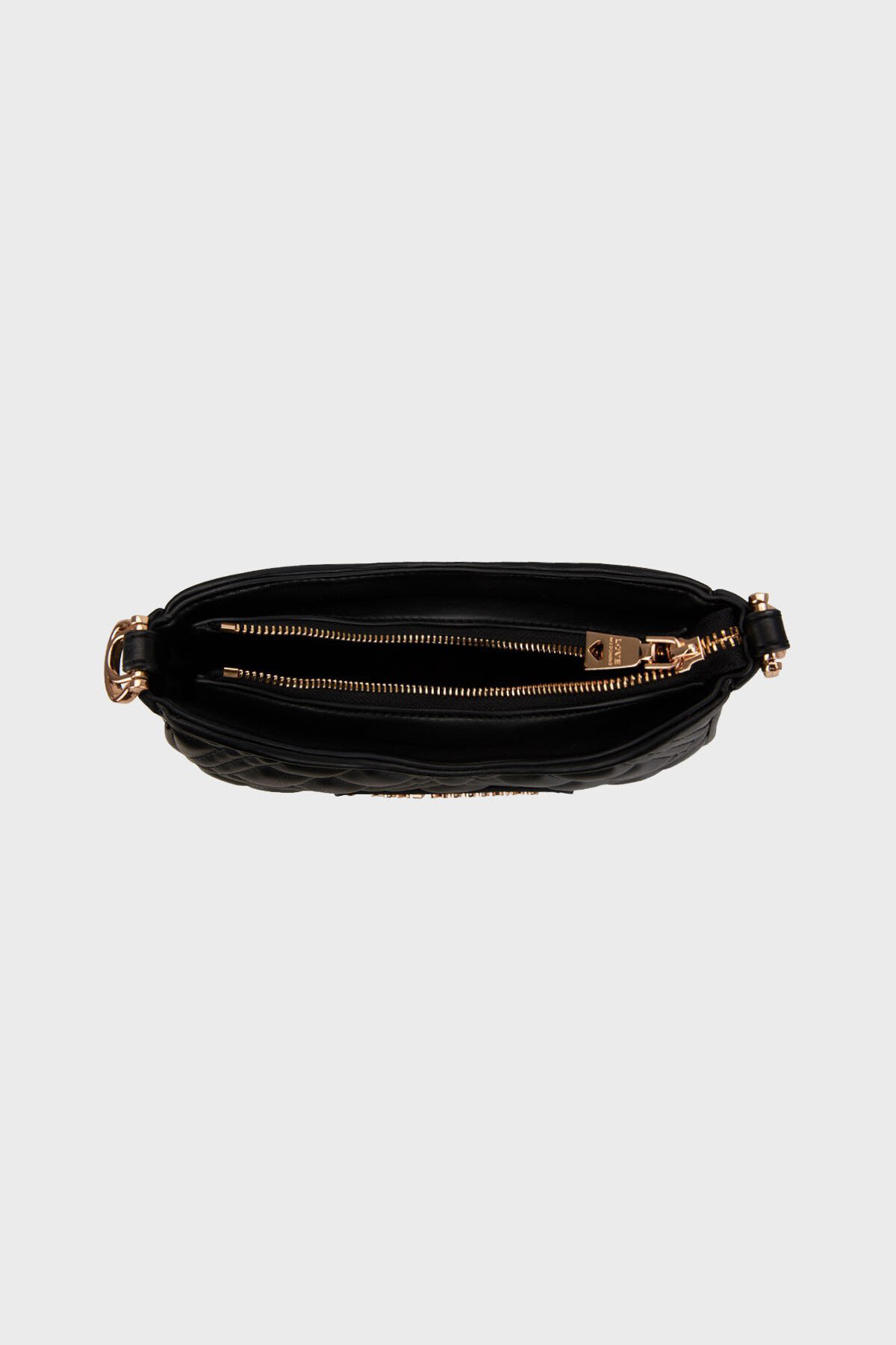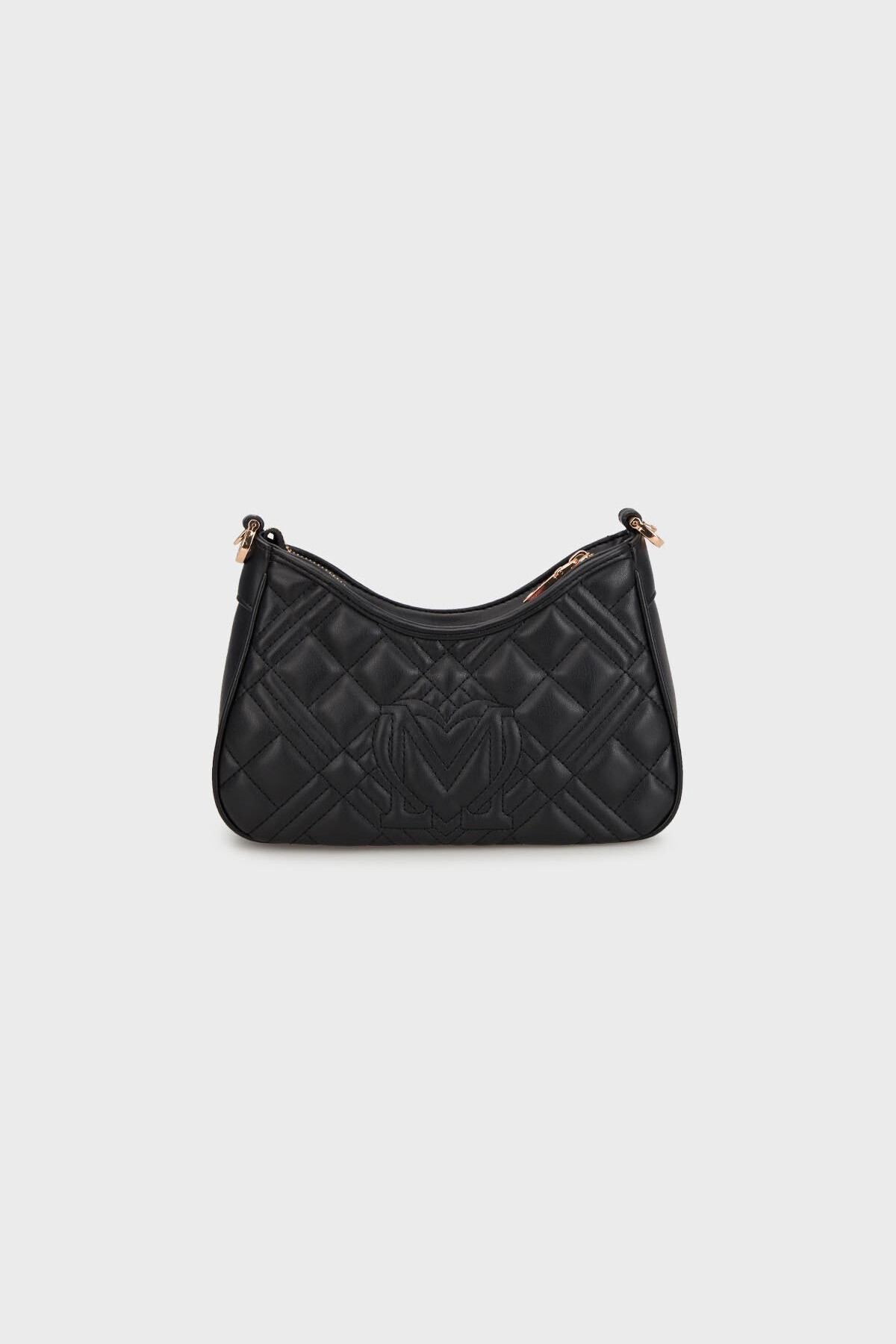 Siyahın zamansız zarafetini romantik detaylarla buluşturan bu omuz çantası, kompakt tasarımı ve çok yönlü kullanım imkanıyla dikkat çekiyor. Yumuşak poliüretan yüzeyi süsleyen geometrik kapitone dikişler, çantaya sofistike bir doku kazandırırken; ön panelde dikişlerle vurgulanan kalp motifi tasarıma feminen bir hava katar. Çantanın en çarpıcı özelliği olan çift askı seçeneği, stil özgürlüğü sunar: Zincir detaylı kısa askısı ile omzunuzda şık bir akşam çantası olarak veya ayarlanabilir uzun askısı ile gün boyu rahat bir çapraz çanta olarak kullanabilirsiniz. Kavisli ağız yapısı ve altın renkli metal aksamları, bu parçayı her kombininiz için lüks bir tamamlayıcıya dönüştürür.