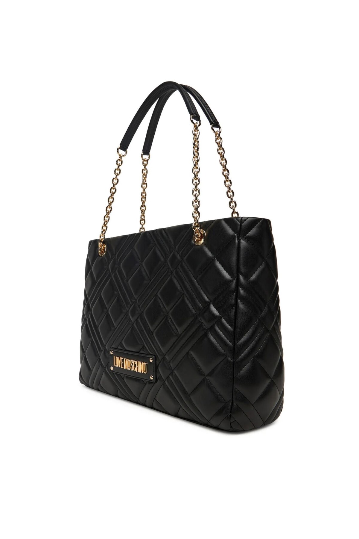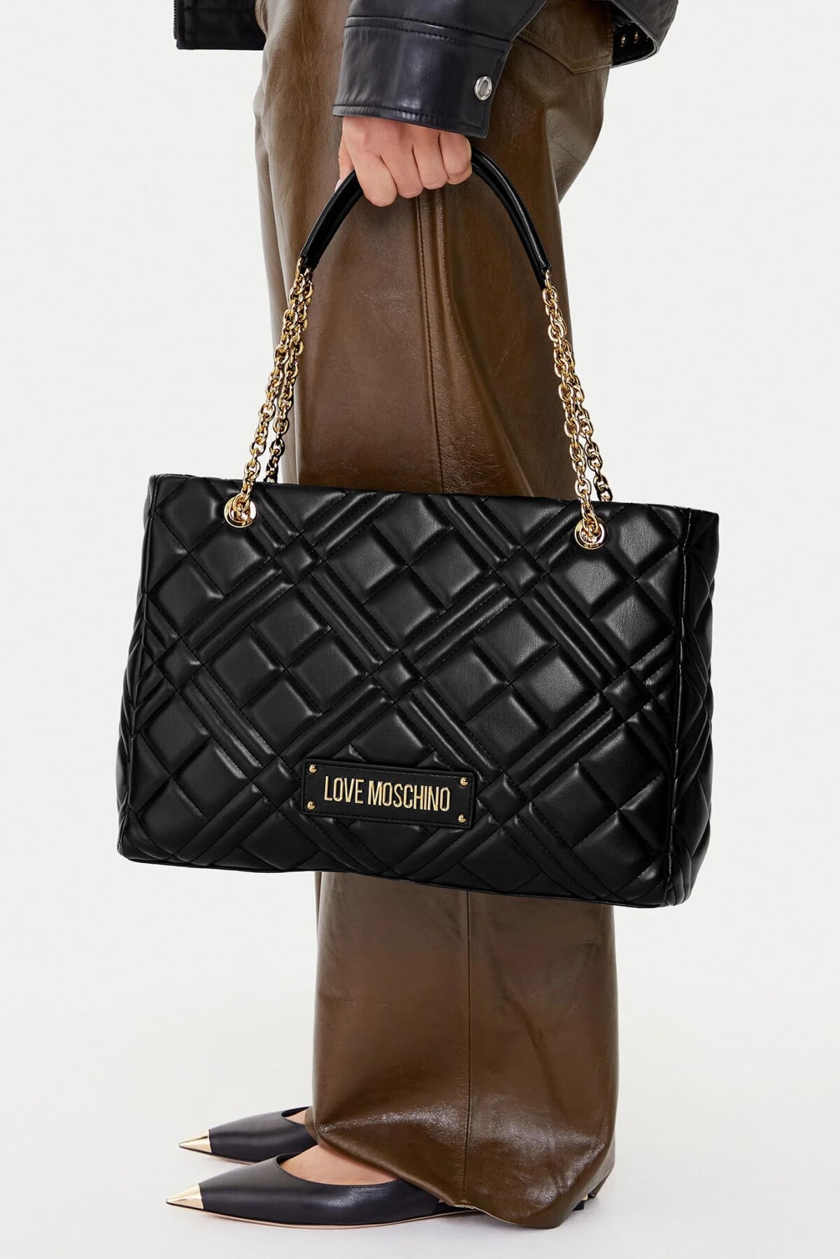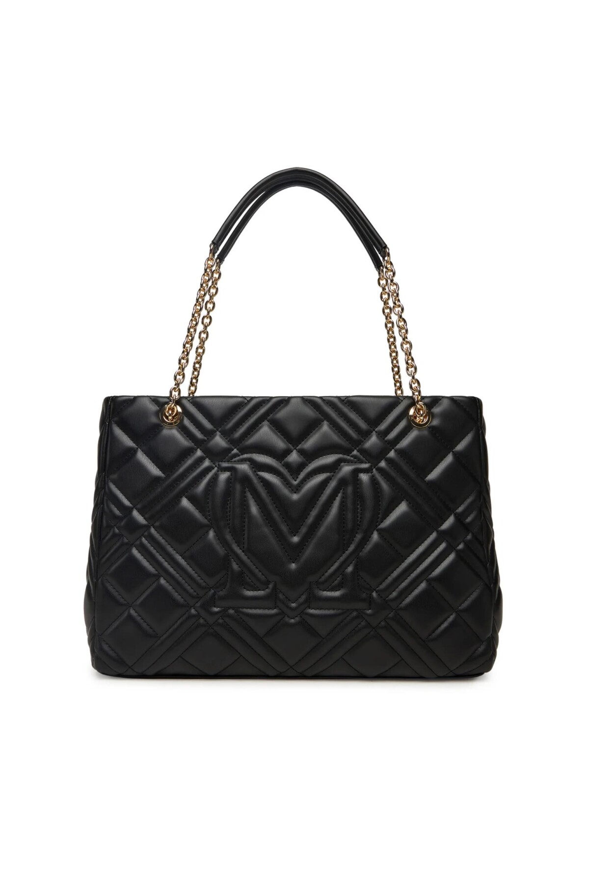 Siyahın asaletini feminen ve şık detaylarla buluşturan bu omuz çantası, gardırobunuzun en zarif parçalarından biri olmaya aday. Çantanın yüzeyindeki geometrik kapitone dikişler, tasarıma derinlik ve sofistike bir doku kazandırırken; ön panelde dikişlerle oluşturulan büyük kalp motifi, modele romantik bir hava katar. Arka yüzeyde yer alan gold renkli metal plaka detayı, tasarıma modern bir ışıltı ekler. Zincir ve suni deri kombinasyonlu omuz askıları, hem konforlu bir taşıma deneyimi sunar hem de çantanın şıklığını tamamlayan zarif bir aksesuar görevi görür. Geniş iç hacmiyle günlük ihtiyaçlarınızı stilinizden ödün vermeden taşıyabilirsiniz.