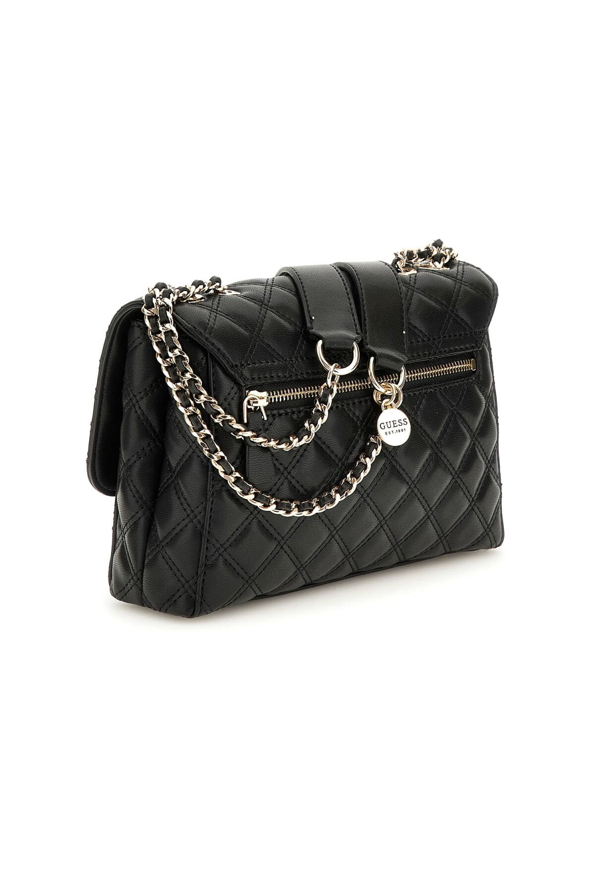 Zamansız bir şıklık sunan bu omuz çantası, tüm yüzeyini kaplayan klasik kapitone dikişleriyle öne çıkar. Çoklu bölmeli iç tasarımı, eşyalarınızı düzenli bir şekilde organize etmenize olanak tanırken, arka yüzeyindeki fermuarlı cep pratik bir kullanım sunar. Gümüş tonlarındaki parlak zincir askısı ve ön kapaktaki üçgen formlu metal aksesuar, çantanın zarif tasarımını tamamlar.