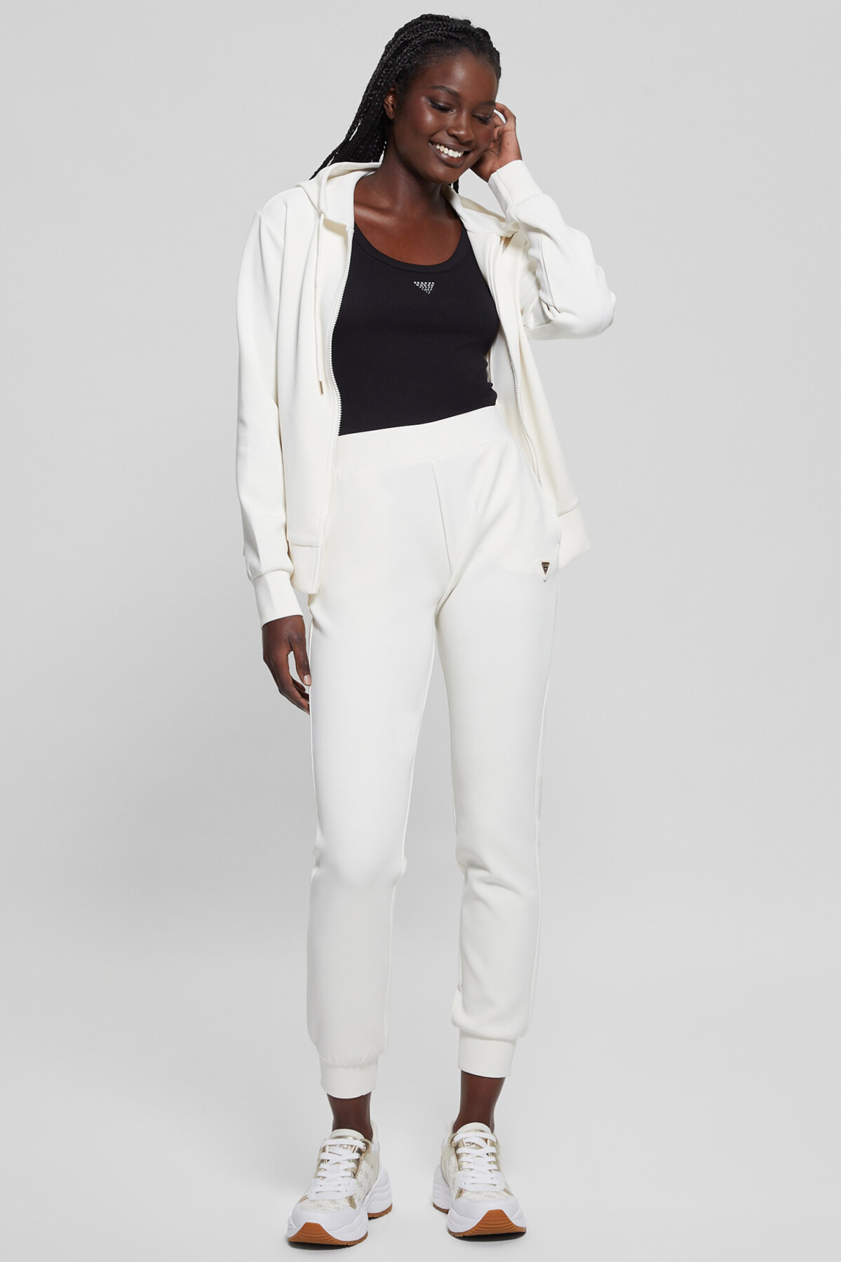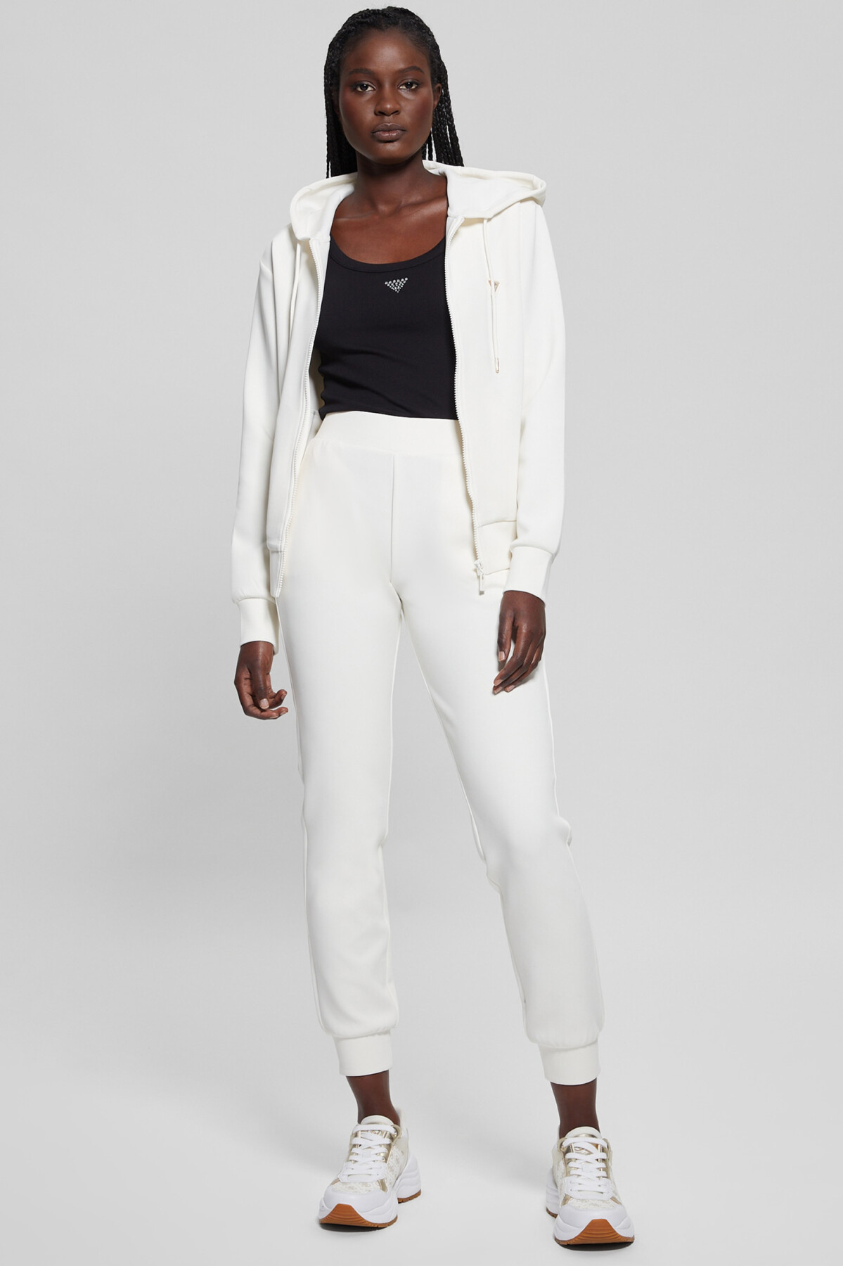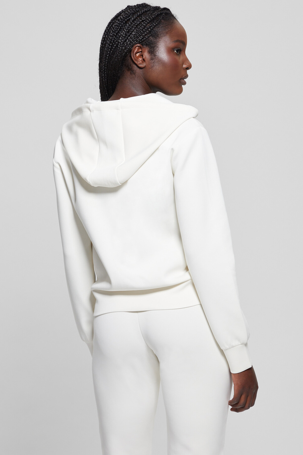Kadın Kapüşonlu Fermuarlı Sweatshirt - Krem
