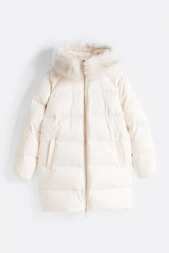 Kadın Kapüşonlu Şişme Mont - Beyaz