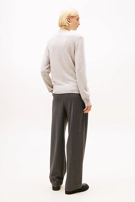 Lüks ve rafine bir tasarıma sahip bu kazak, zengin yün ve kaşmir karışımlı iplikten üretilmiştir. Yumuşak yünün sıcaklığını ve kaşmirin eşsiz dokusunu bir araya getiren bu triko, soğuk havalar için sofistike bir seçenektir. Modern ve zarif bir silüet sunan yarım balıkçı yakası, regular kalıbıyla gün boyu konfor sağlar. Göğüs kısmındaki minimalist amblem, tasarıma incelikli bir imza atar.