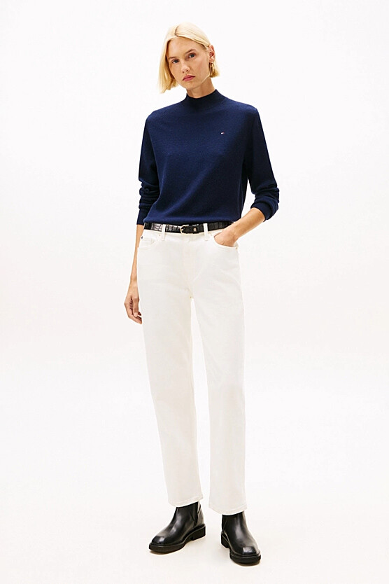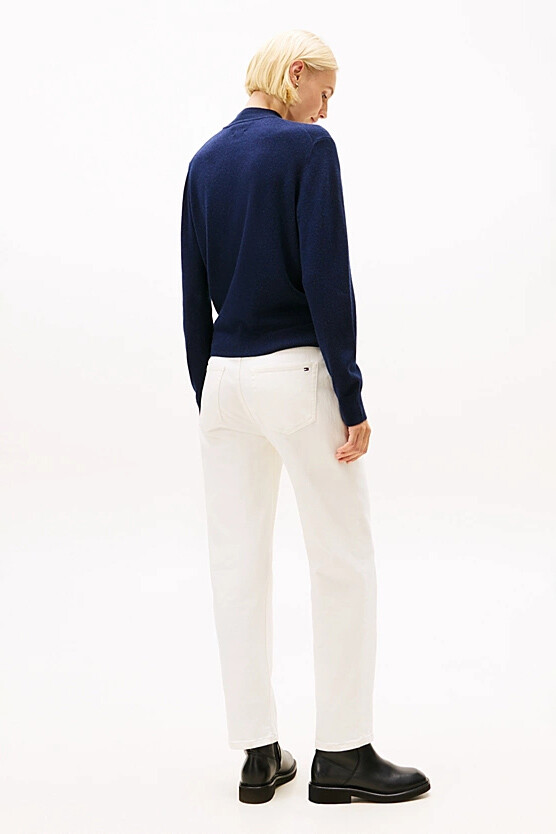 Sofistike bir gardırobun vazgeçilmez bir parçası olan bu lüks ve zamansız kazak, zengin yün ve kaşmir karışımlı iplikten üretilmiştir. Yumuşak yünün sıcaklığını ve kaşmirin eşsiz dokusunu bir araya getiren bu triko, olağanüstü bir sıcaklık ve konfor sunar. Modern ve zarif bir silüet sunan yarım balıkçı yakası, regular kalıbıyla klasik bir duruş sergiler. Göğüs kısmındaki minimalist amblem, tasarıma incelikli bir imza atar.