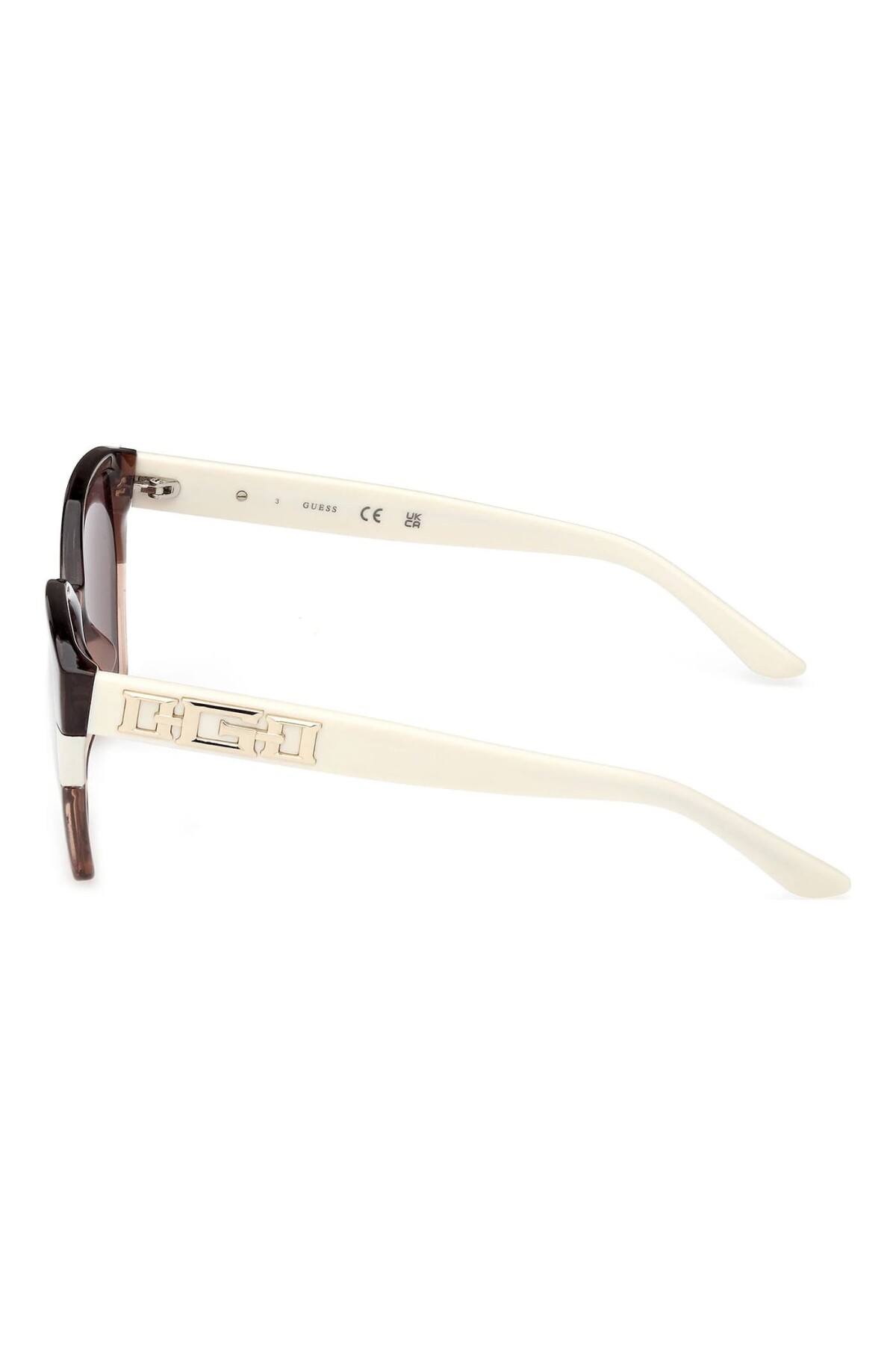 Yarı şeffaf gri gövdesi ve kontrast oluşturan opak beyaz saplarıyla dikkat çeken bu güneş gözlüğü, modern ve feminen bir stil sunuyor. Hafif kelebek (butterfly) formu yüzü nazikçe çerçevelerken, saplardaki belirgin geometrik metal detaylar tasarıma lüks bir dokunuş katıyor. Hem günlük şıklık hem de dikkat çekici bir aksesuar arayanlar için ideal bir tamamlayıcıdır.