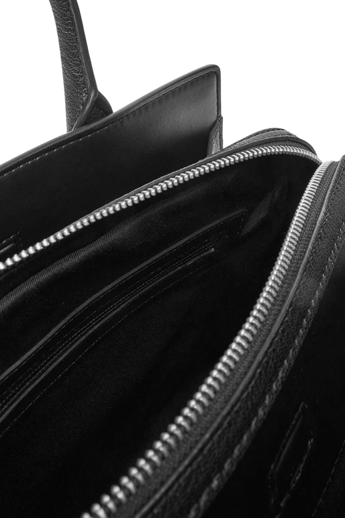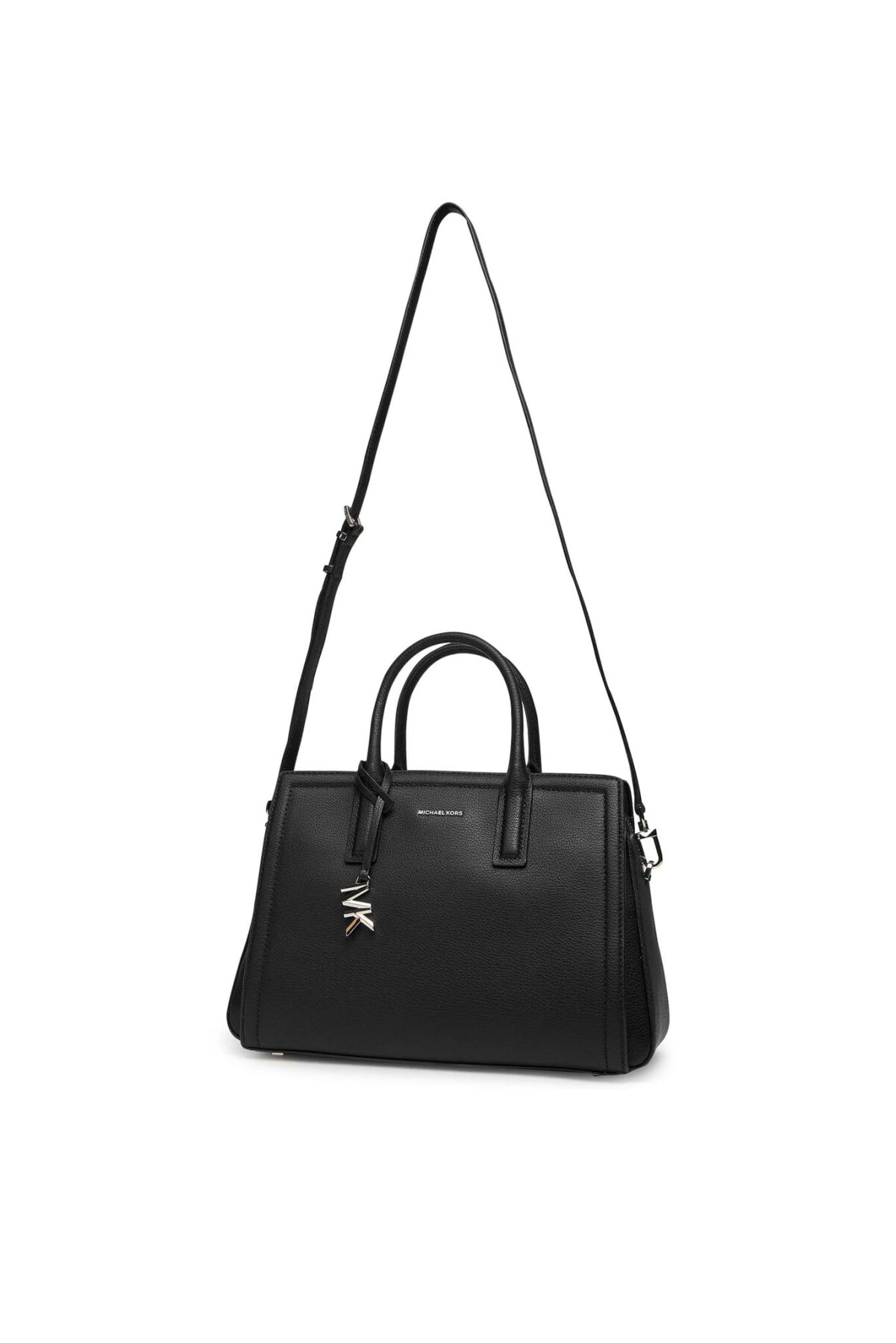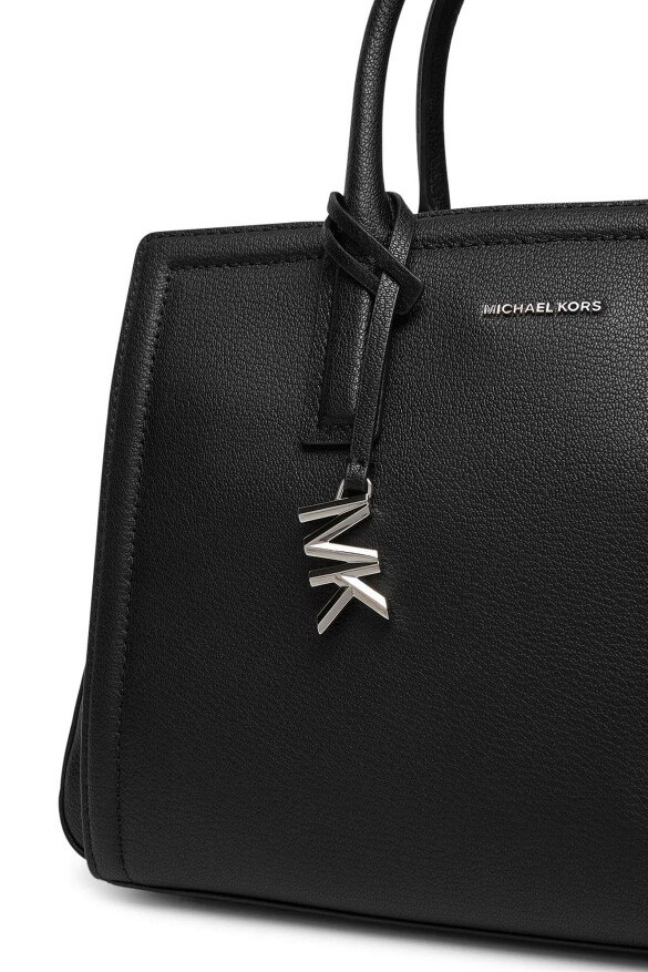 Siyahın asaletini gümüş renkli metal detaylarla buluşturan Laila, modern ve zamansız bir stil sunuyor. Dayanıklı poliüretan malzemesi ve kendinden dokulu yüzeyi ile kaliteli bir görünüm sergilerken, ön kısımdaki sallantılı marka logolu aksesuarı şıklığınızı tamamlar. 30 cm genişliğindeki ideal orta boyutu sayesinde günlük eşyalarınızı rahatça taşıyabilir, hem elde hem de omuzda kullanım opsiyonuyla her kombininize uyum sağlayabilirsiniz.