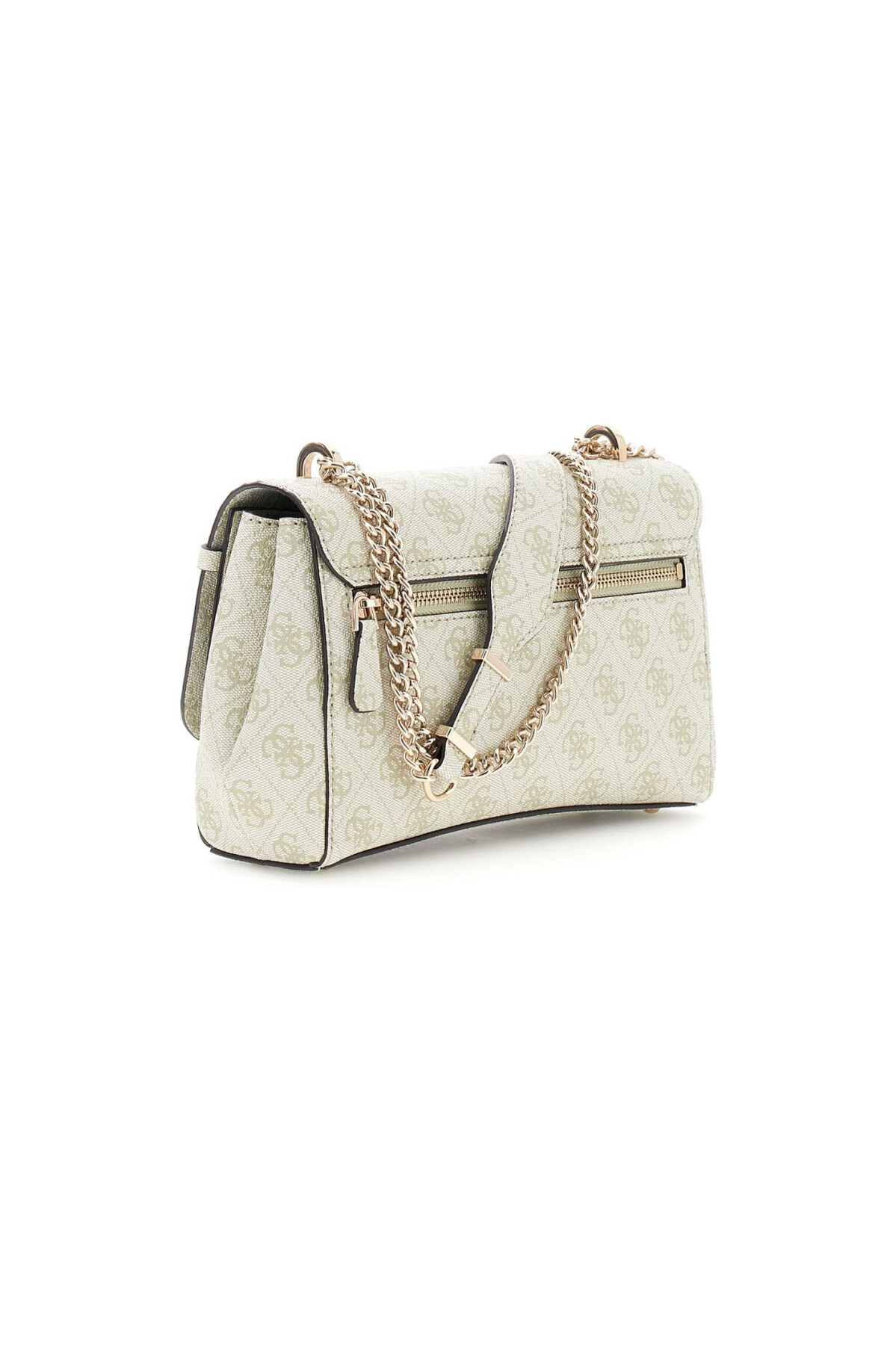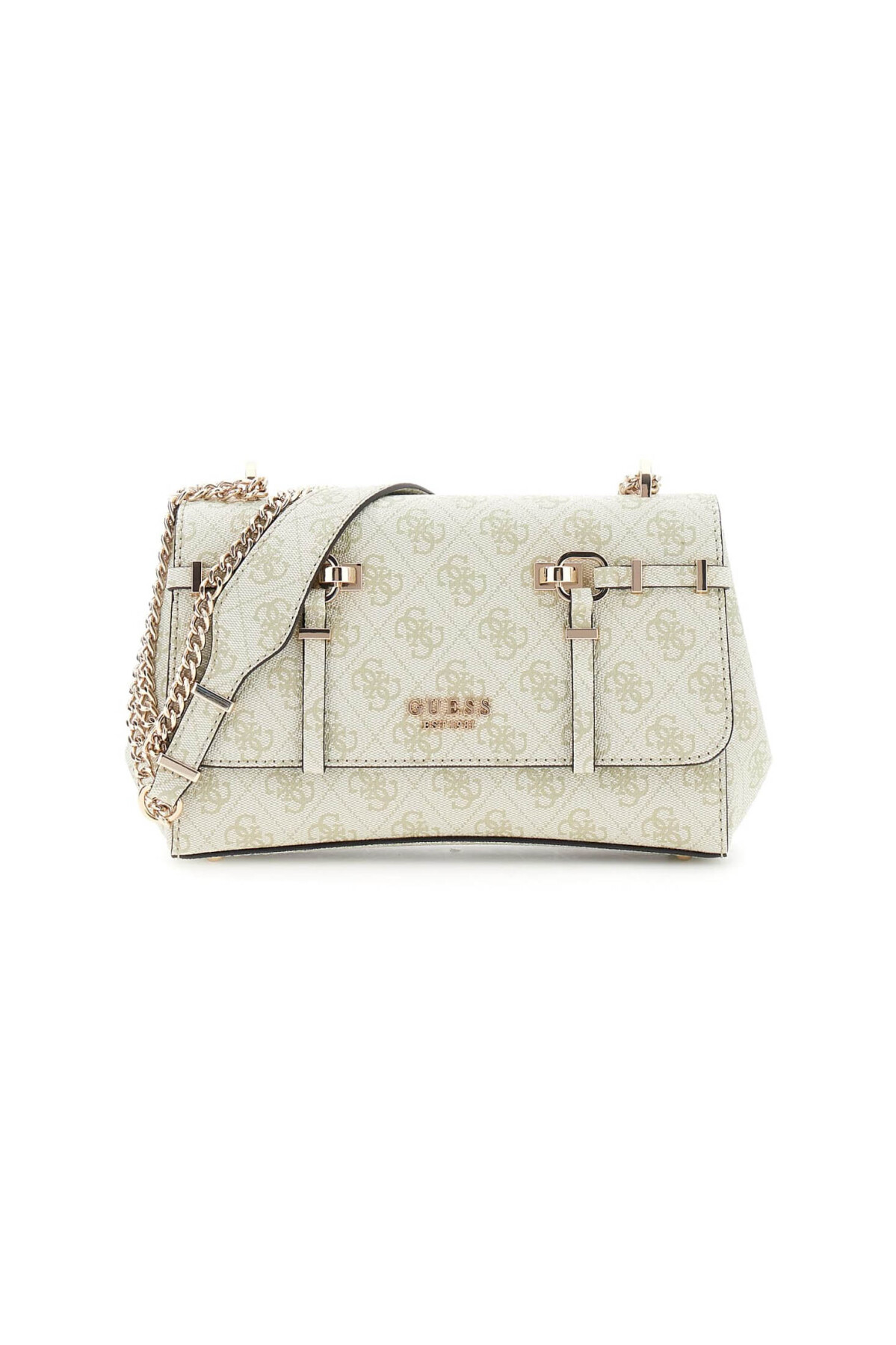 Zarafeti ve ikonik Guess stilini bir araya getiren bu omuz çantası, her türlü kombinine prestijli bir dokunuş katıyor. %100 poliüretan içerikli yüksek kaliteli deri görünümlü yapısı, tüm yüzeye uygulanan açık bej tonlarındaki "4G" logo baskısıyla markanın zamansız estetiğini yansıtır. Çantanın ön panelinde yer alan altın rengi metalik "GUESS EST. 1981" yazısı ve kemer tokası detayları, tasarıma rafine bir derinlik ve şıklık kazandırır.