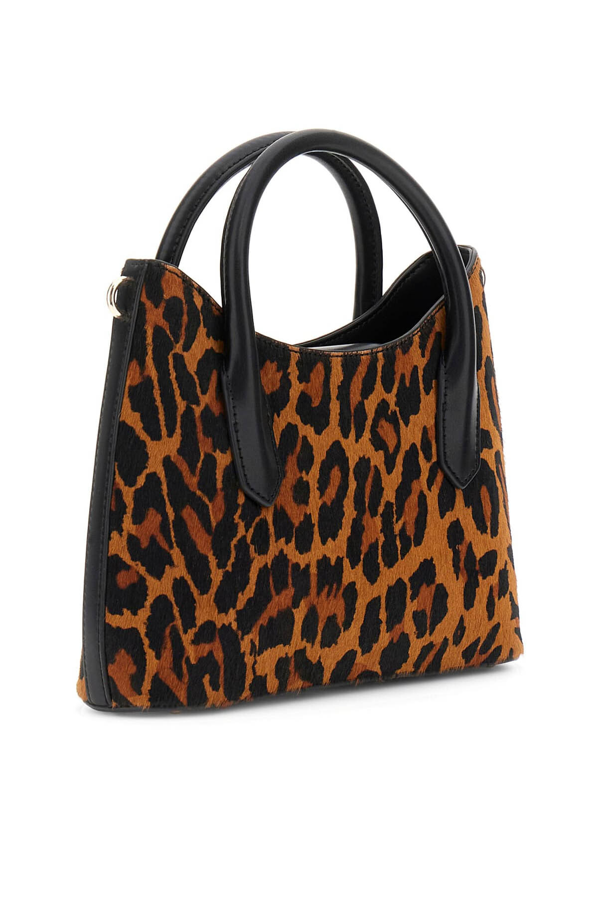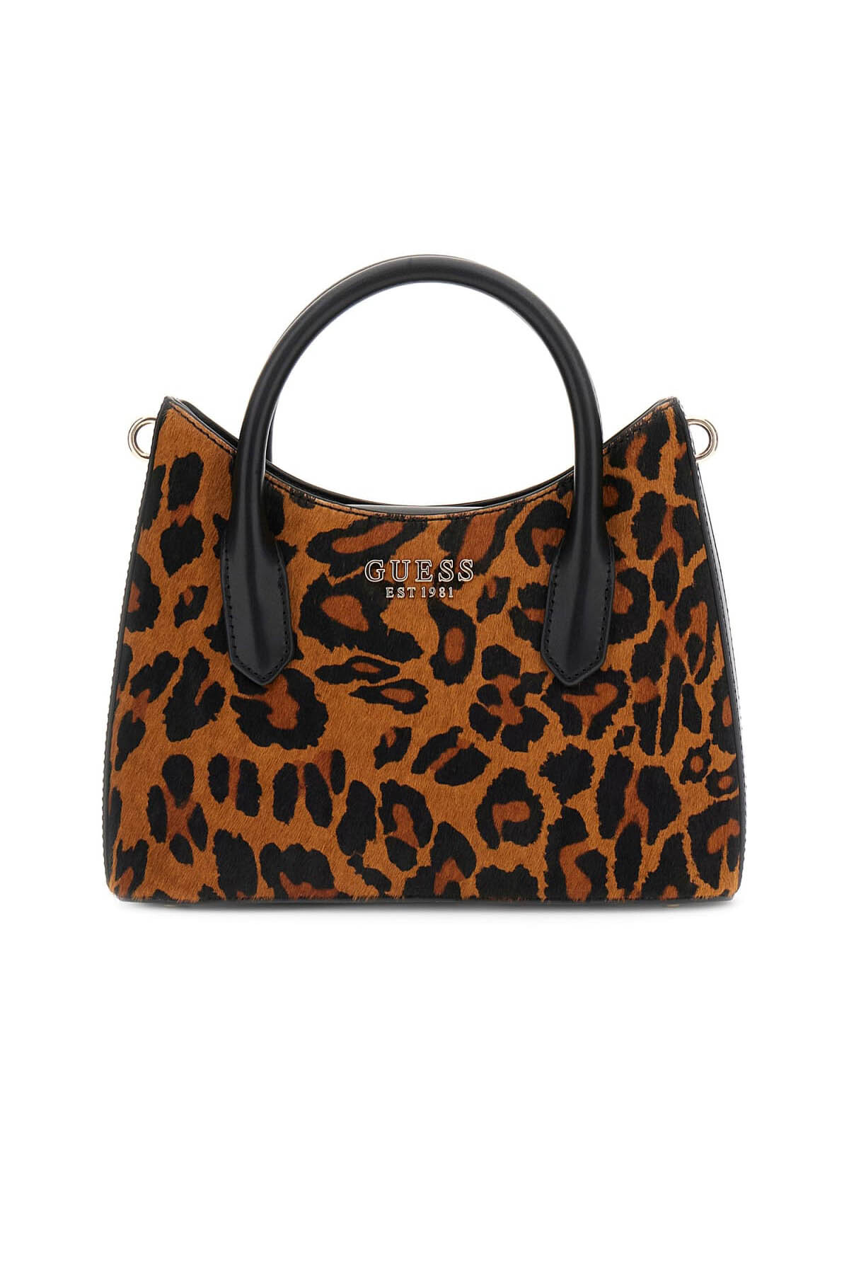 Göz alıcı ve lüks bir tasarıma sahip bu el çantası, %100 gerçek inek derisinden üretilmiştir. Tüy dokulu yüzey üzerindeki canlı leopar deseni, çantanın yapısal formu ve siyah renkli saplarıyla modern bir kontrast oluşturur. Ön yüzdeki minimalist yazı baskısı, çantanın sofistike tasarımına zarif bir imza atar.
