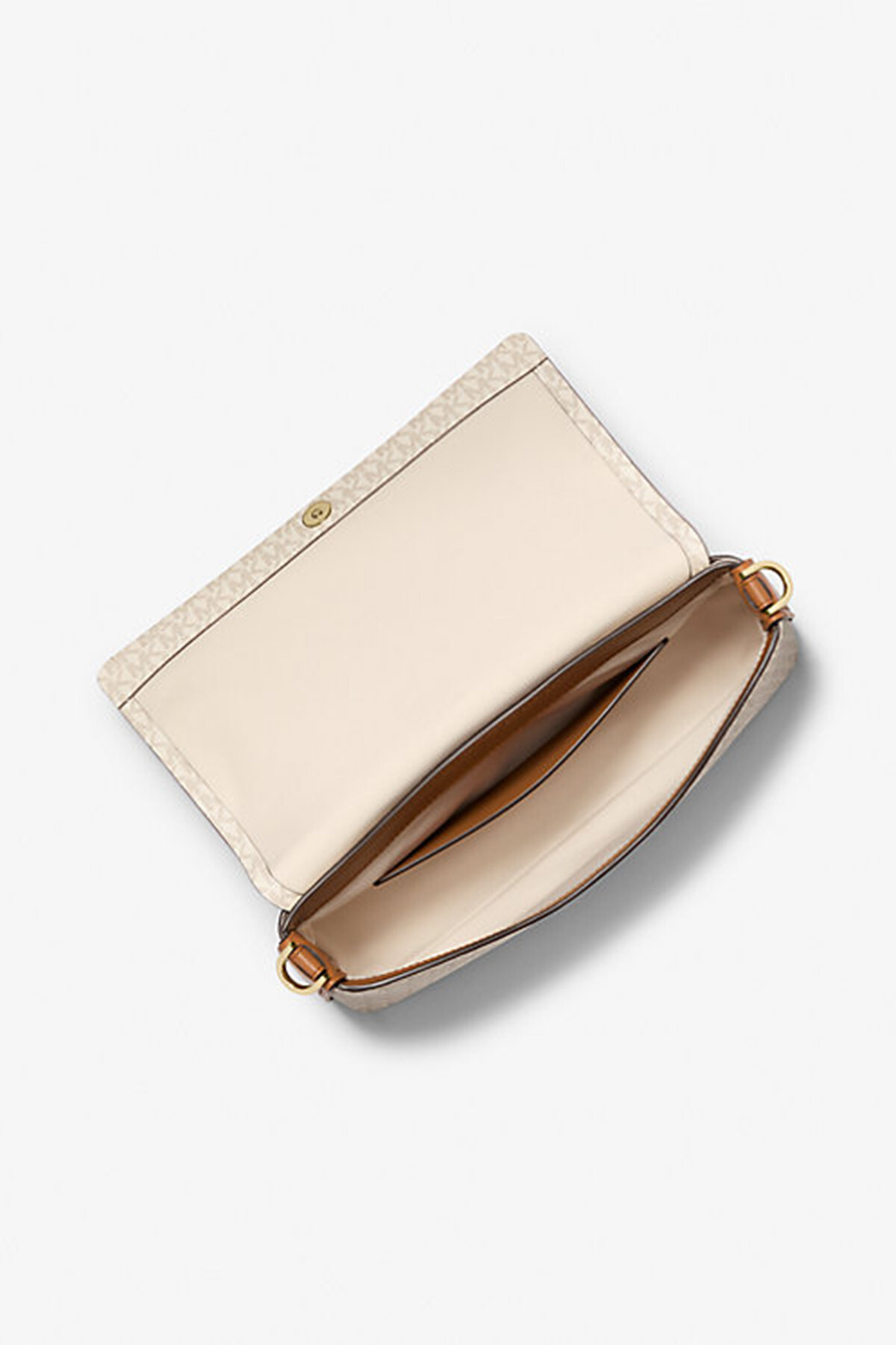 Michael Kors'un Lg Messenger modeli, markanın ikonik krem monogram desenini şık taba rengi detaylarla birleştiriyor. Geniş ve ayarlanabilir omuz askısı, gün boyu konforlu bir taşıma deneyimi sunar. Mıknatıslı kapaklı tasarımı kullanım kolaylığı sağlarken, geniş iç hacmi günlük eşyalarınız için ideal bir saklama alanı sunar. Bu zarif ve fonksiyonel postacı çanta, günlük stilinizin tamamlayıcısı olacak.