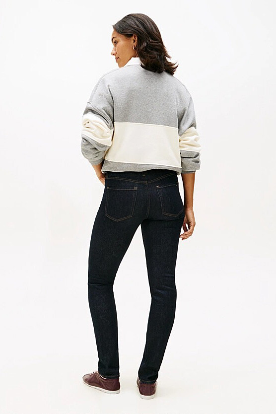 Pamuk ve liosel karışımlı özel dokusu sayesinde klasik denimin sertliğini kırarak gün boyu süren benzersiz bir yumuşaklık ve hafiflik hissi sunar. Vücudu dengeli bir şekilde saran dar kesimi (slim fit) ve orta bel tasarımı, bacak boyunu vurgulayarak her ortamda modern ve zarif bir silüet oluşturmanıza yardımcı olur. Klasik beş cepli tasarımı ve arka cepteki deri görünümlü logo detayı, bu koyu renkli zamansız parçaya şık bir kalite imzası atar.