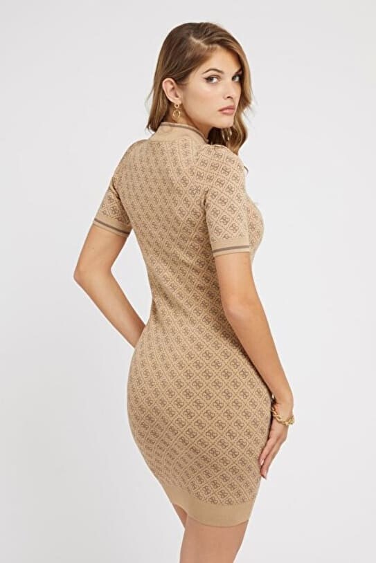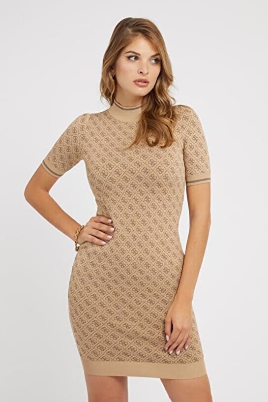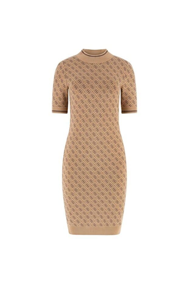 Vücudu saran şık ve modern bir silüet sunan bu triko elbise, zarafeti ve konforu bir araya getiriyor. Baştan aşağı jakarlı monogram deseniyle kaplı olan bu parça, markanın imza stilini yansıtırken, esnek ve yumuşak triko kumaşı vücudu ikinci bir ten gibi sararak gün boyu rahatlık sağlar. Yarım balıkçı yakası ve kontrast şeritli detayları tasarıma sofistike bir dokunuş katar. Hem gündüz hem de gece şıklığı için topuklu ayakkabılar veya çizmelerle kolayca kombinlenebilen, göz alıcı bir stildir.