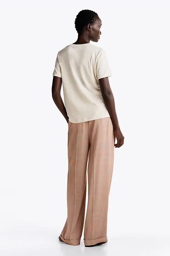 Kadın Logo Yuvarlak T-Shirt - Bej