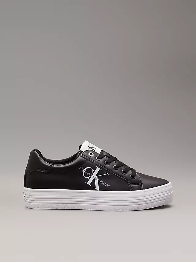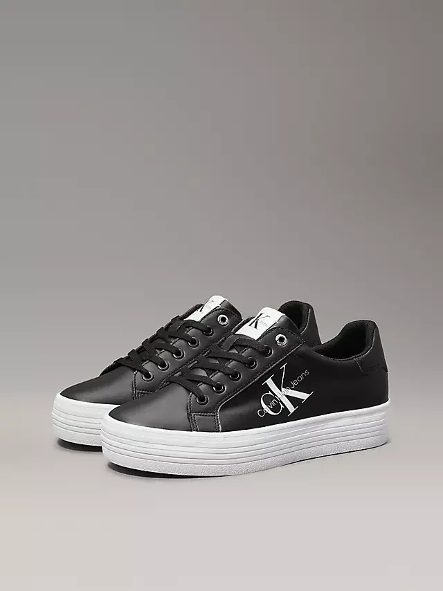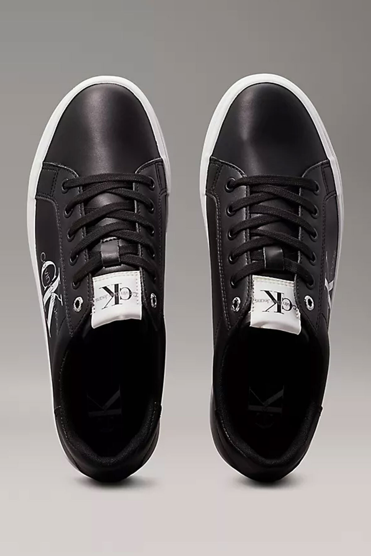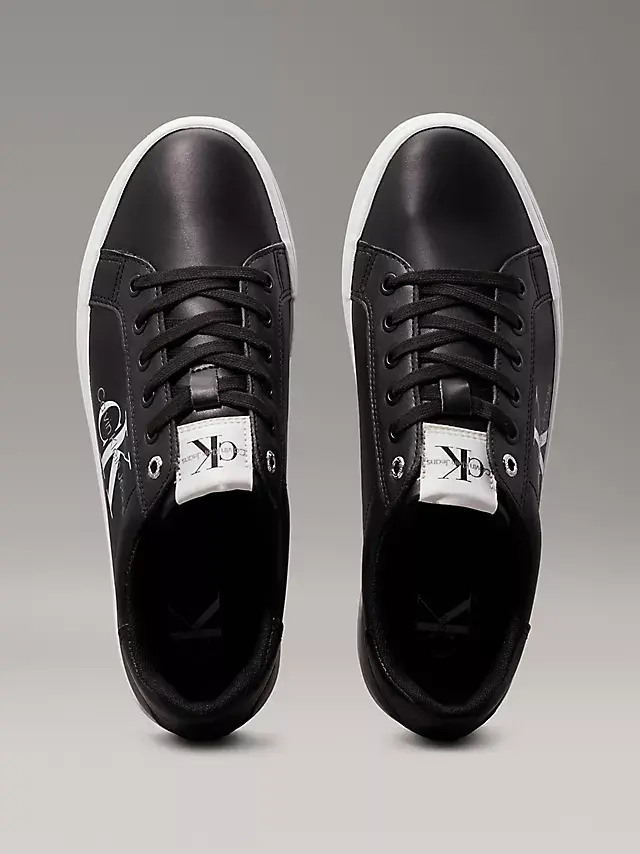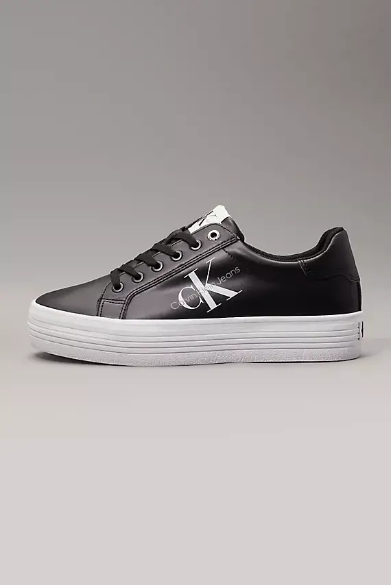 Kadın Logolu Deri Sneaker Ayakkabı - Siyah Beyaz