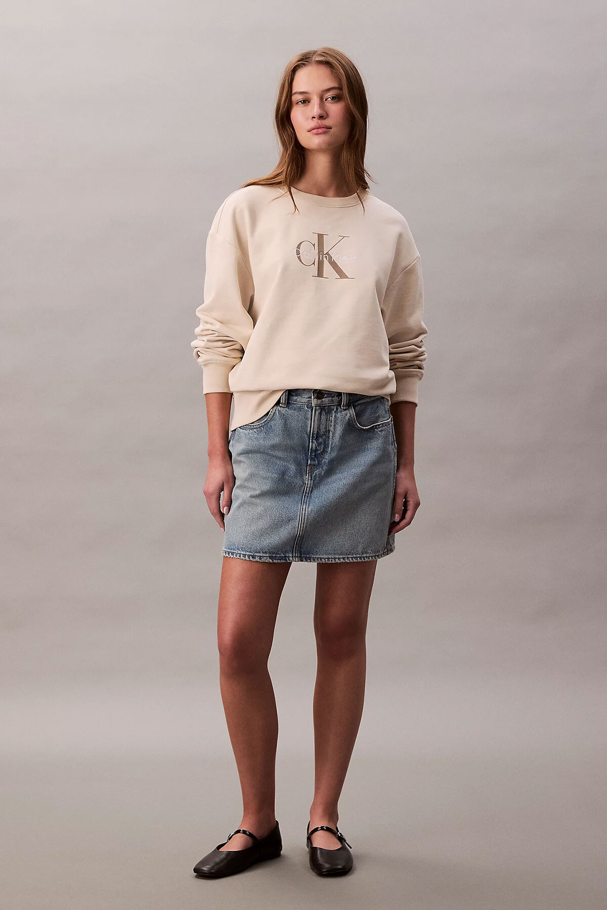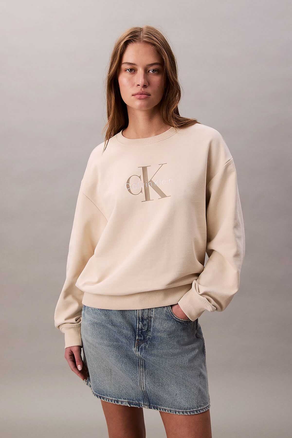 Modern çizgilerle sade şıklığı buluşturan relaxed sweatshirt, ön yüzündeki büyük CK monogram baskısıyla markanın ikonik tarzını yansıtıyor. French terry kumaşı sayesinde yumuşak dokulu ve gün boyu konforlu bir kullanım sunar. Oversize görünümü ve düşük omuz kesimiyle hem sportif hem de şık kombinler için ideal bir parçadır. Kot etek ya da jogger pantolonlarla tamamlayarak zamansız bir stil elde edebilirsiniz.