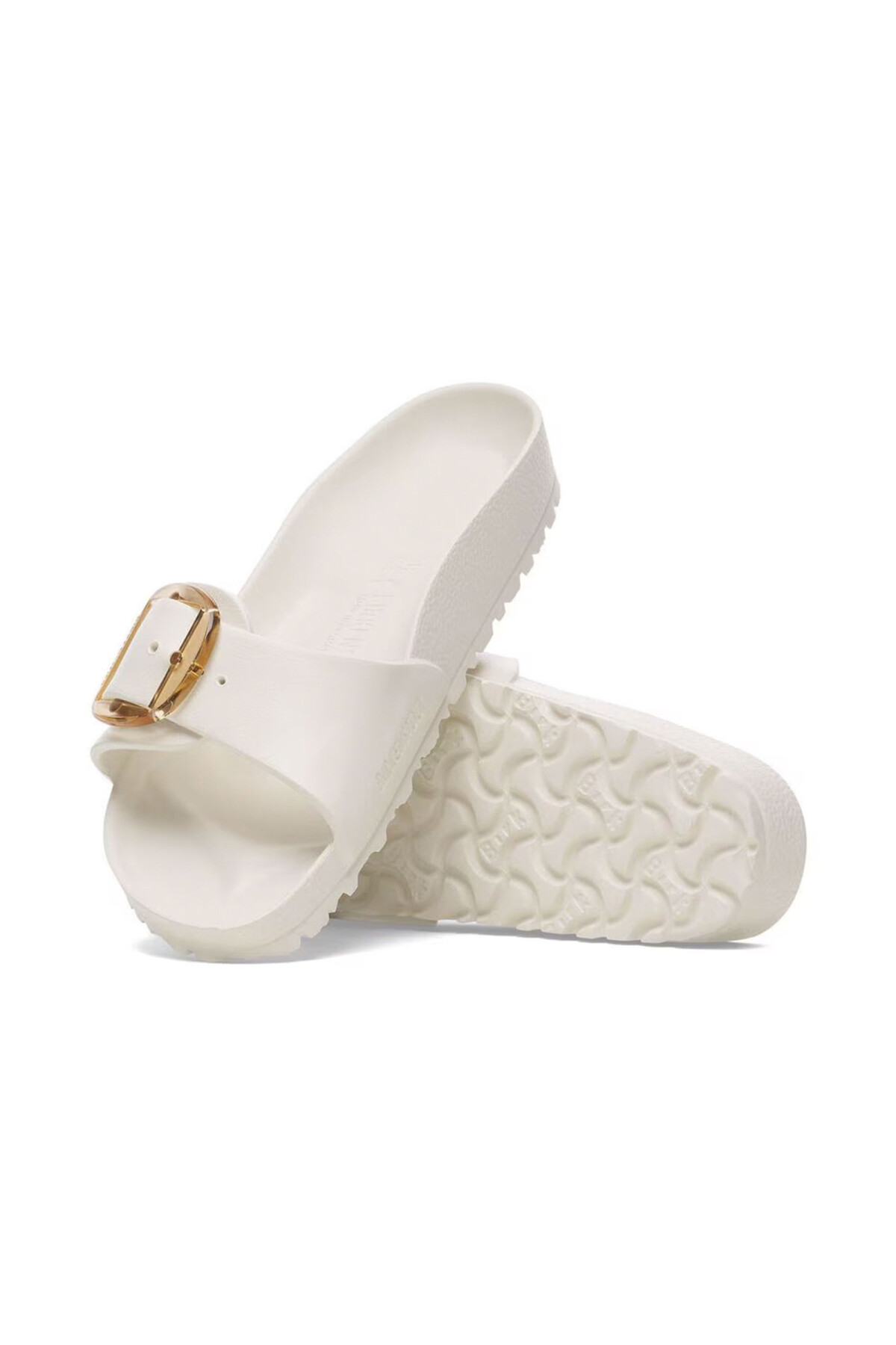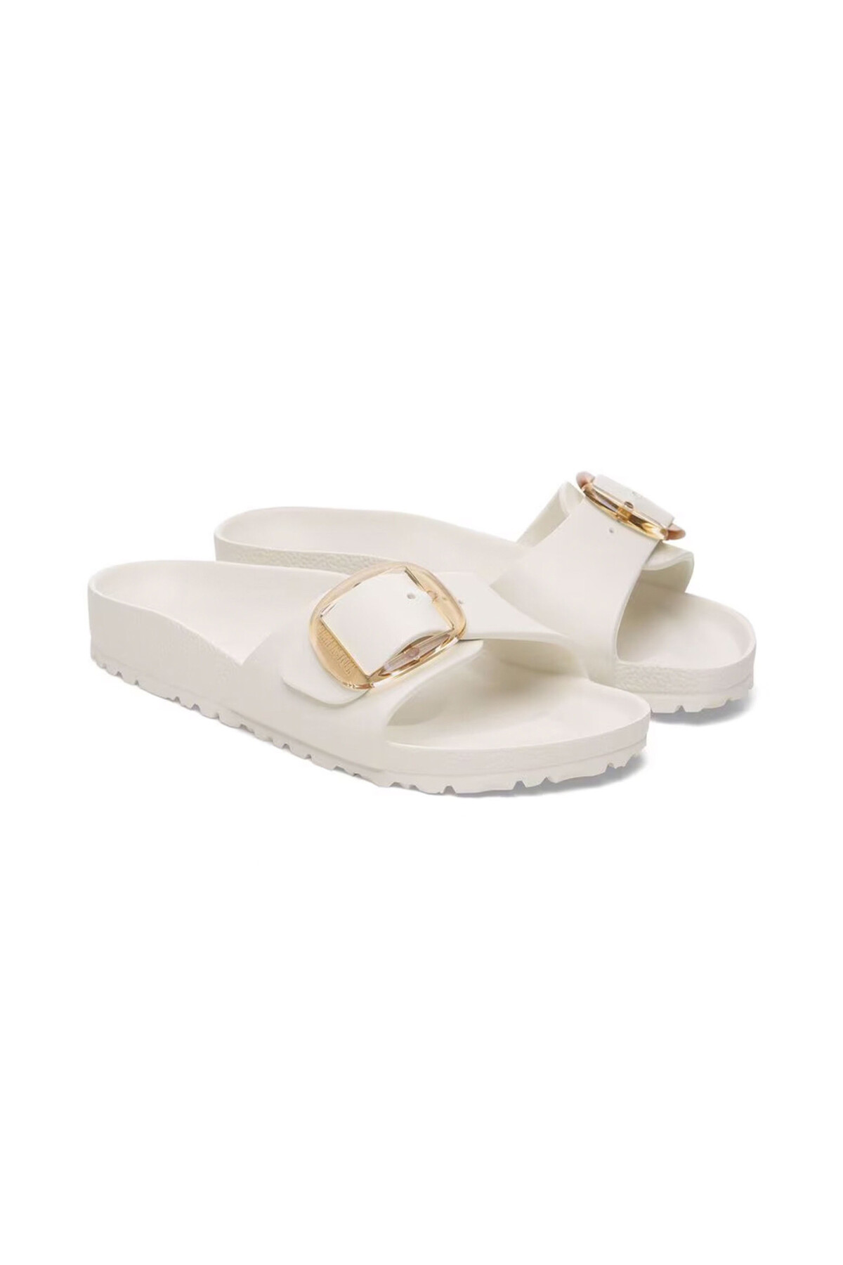 Klasik Madrid silüetini zarif ve minimalist bir dokunuşla yeniden yorumlayan bu tek bantlı tasarım, yaz stilinize ferah bir lüks katıyor. Göz alıcı parlak büyük toka detayı adımlarınıza estetik bir vurgu yaparken; kokuyu önleyen, su geçirmez ve yıkanabilir esnek eva yapısı kusursuz bir dayanıklılık sergiler. Dar kalıplı, anatomik olarak şekillendirilmiş şok emici tabanıyla plajdan şehir sokaklarına kadar her anınızda üstün bir konfor vadeder.