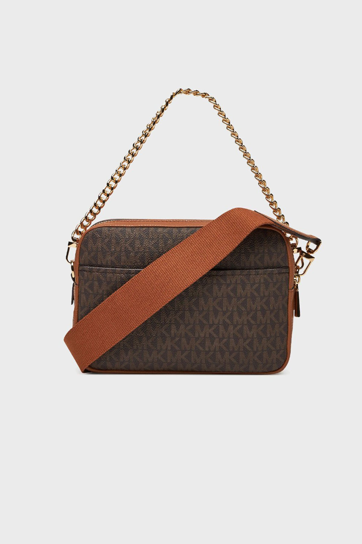 Michael Kors'un ikonik Md Dblzp Chn Camera Xbody modeli, markanın klasik kahverengi monogram desenini modern ve fonksiyonel bir tasarımla sunar. Taba rengi detaylarla tamamlanan bu çanta, lüks ve tanınır bir görünüm kazandırır. Çift fermuarlı (Dblzp) iki ayrı bölmesi sayesinde eşyalarınızı düzenli bir şekilde saklamanızı sağlayan bu model, hem şık altın rengi zincir askısı hem de sportif dokuma omuz askısı ile çok yönlü bir kullanım sunar.