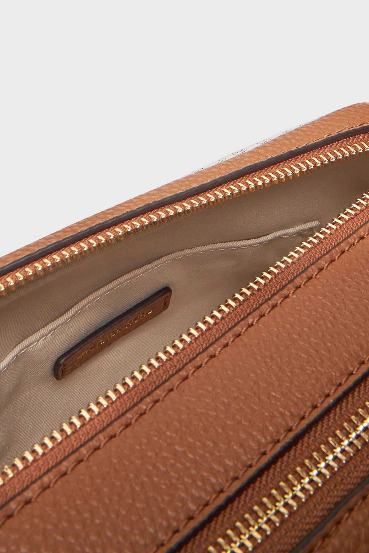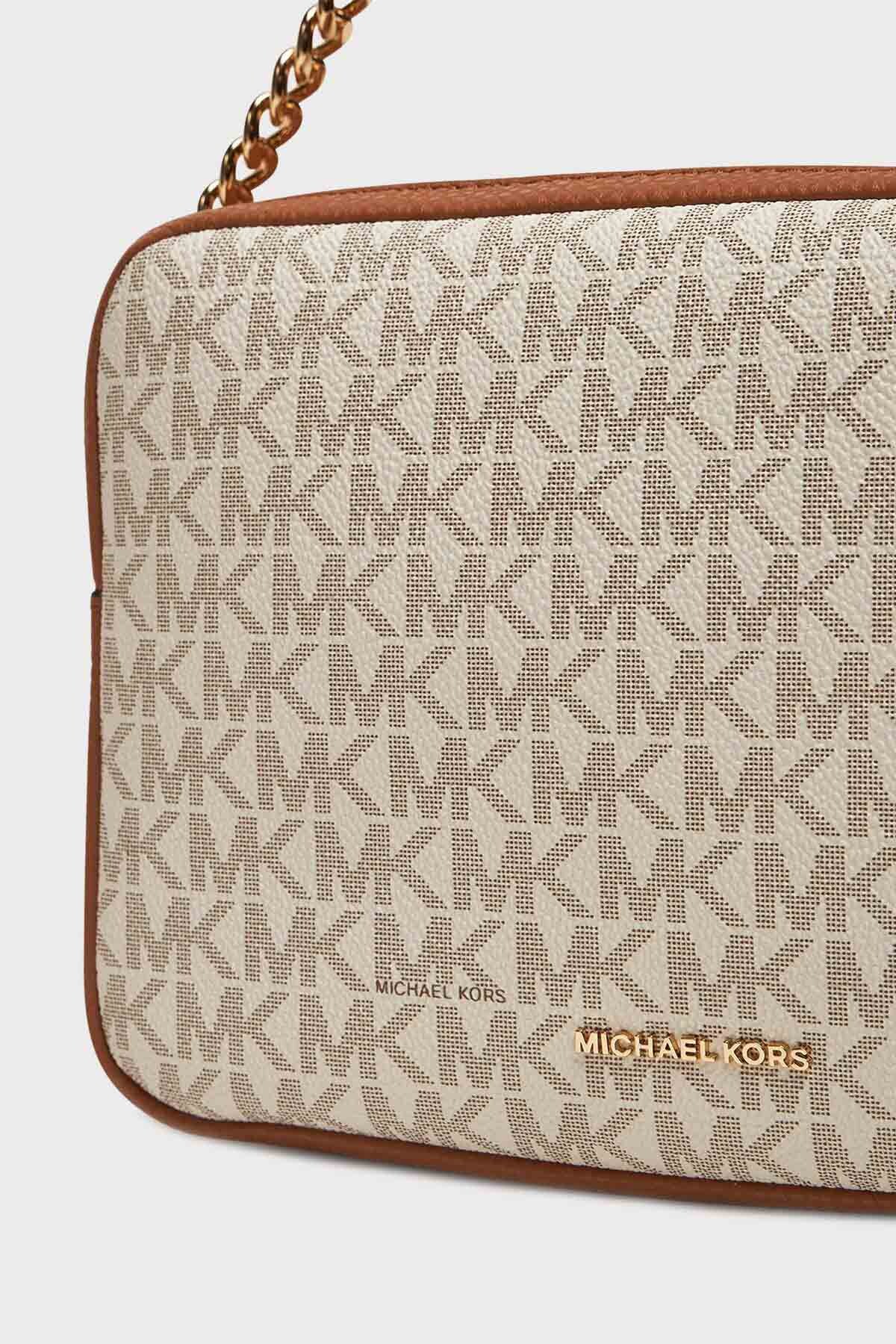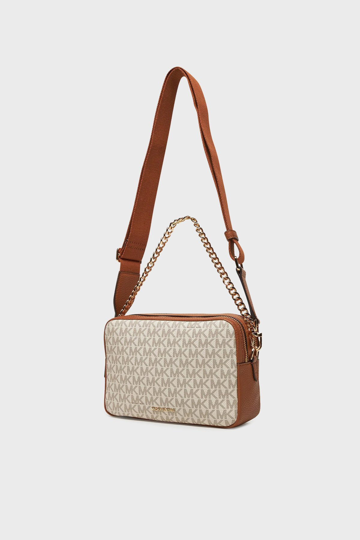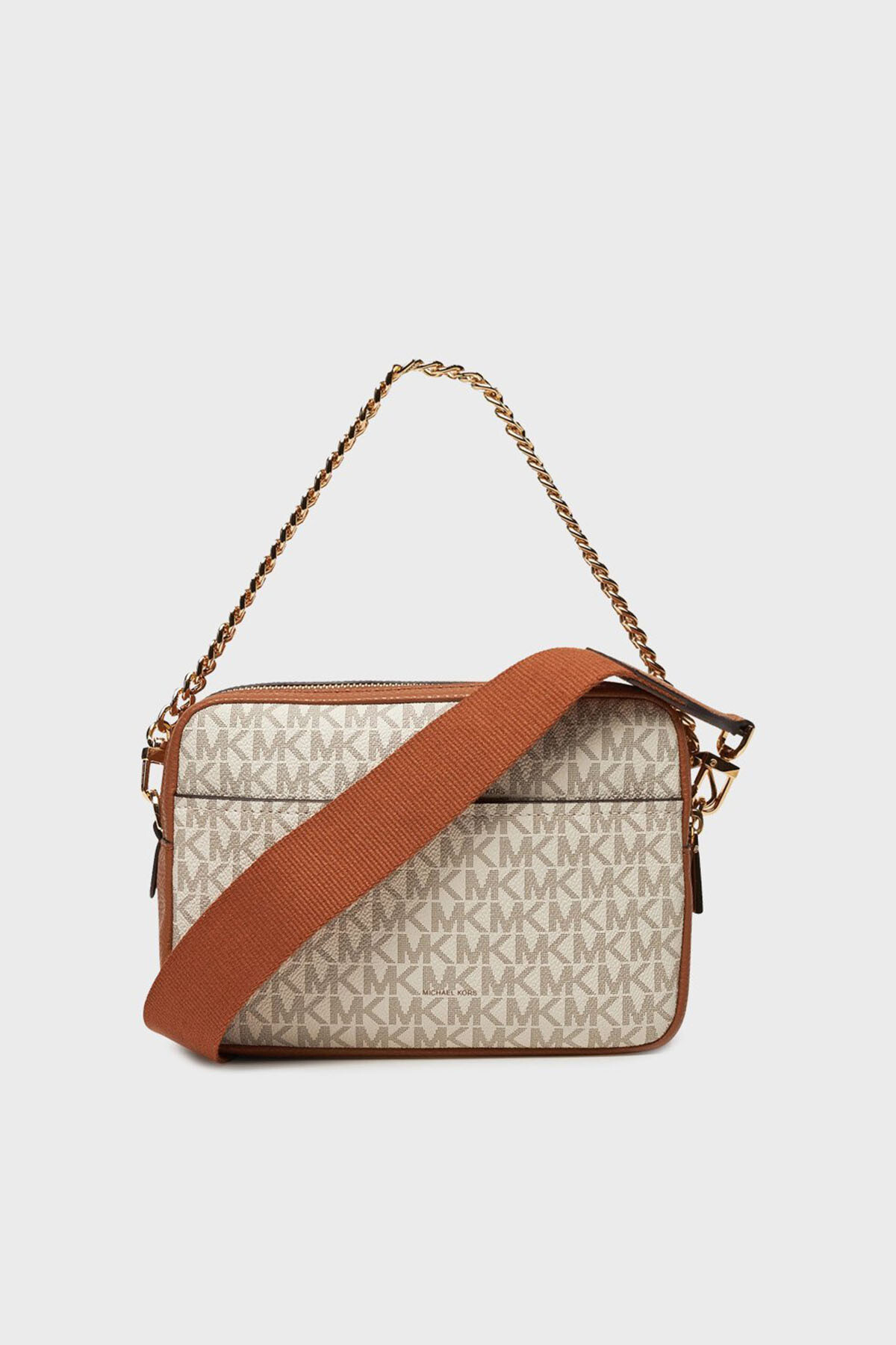 Michael Kors'un ikonik Md Dblzp Chn Camera Xbody modeli, markanın zamansız monogram desenini modern ve fonksiyonel bir tasarımla sunar. Krem zemin üzerine kahverengi MK logo baskısı ve taba rengi detaylar, çantaya lüks ve tanınır bir görünüm kazandırır. Çift fermuarlı (Dblzp) iki ayrı bölmesi sayesinde eşyalarınızı düzenli bir şekilde saklamanızı sağlayan bu model, hem şık altın rengi zincir askısı hem de sportif dokuma omuz askısı ile çok yönlü bir kullanım sunar.