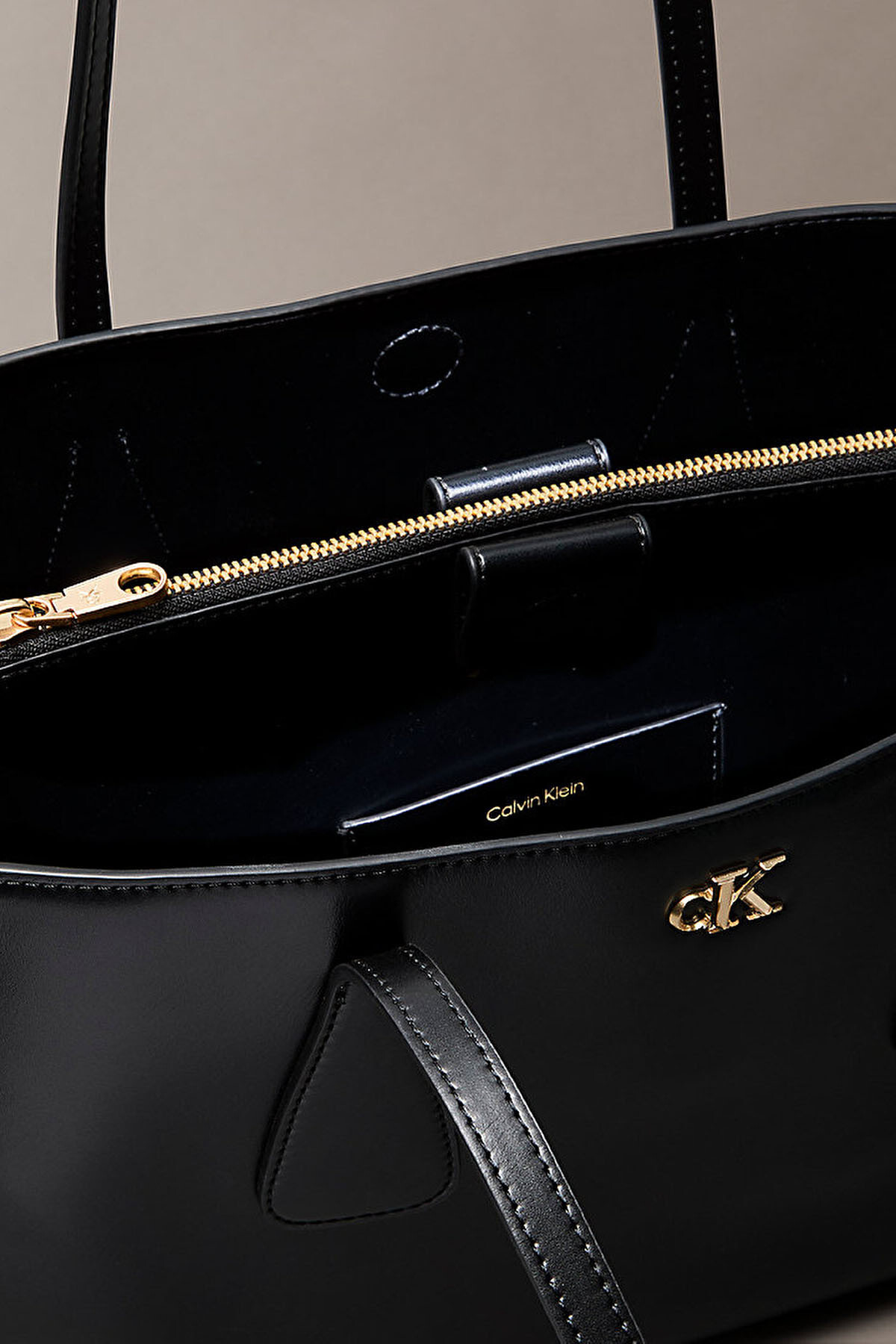 İşlevselliği merkezine alan iç tasarımı, eşyalarınızı organize etmeniz için üç ana bölmeden oluşur: Üst orta kısımda yer alan güvenli fermuarlı bölme ve her iki yanında mıknatıslı sekme kapamalarla korunan geniş açık bölmeler. İç panelde yer alan gold renkli logo baskısı, markanın detaycı yaklaşımını vurgular. Ofis stilinden günlük şehir kombinlerine kadar geniş bir kullanım alanı sunan bu çanta, zamansız siyah rengiyle her gardırobun kilit aksesuarı olmaya adaydır.