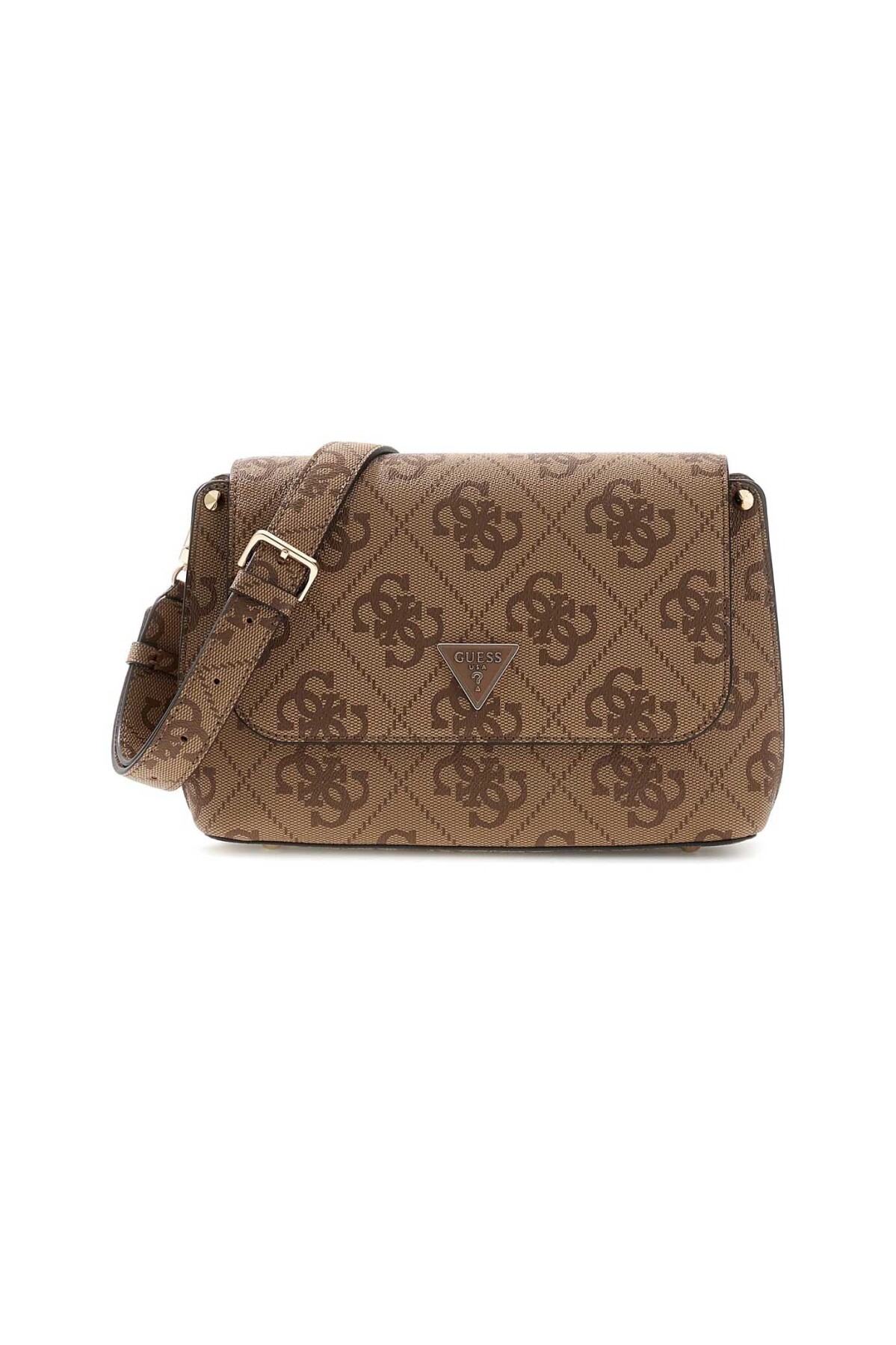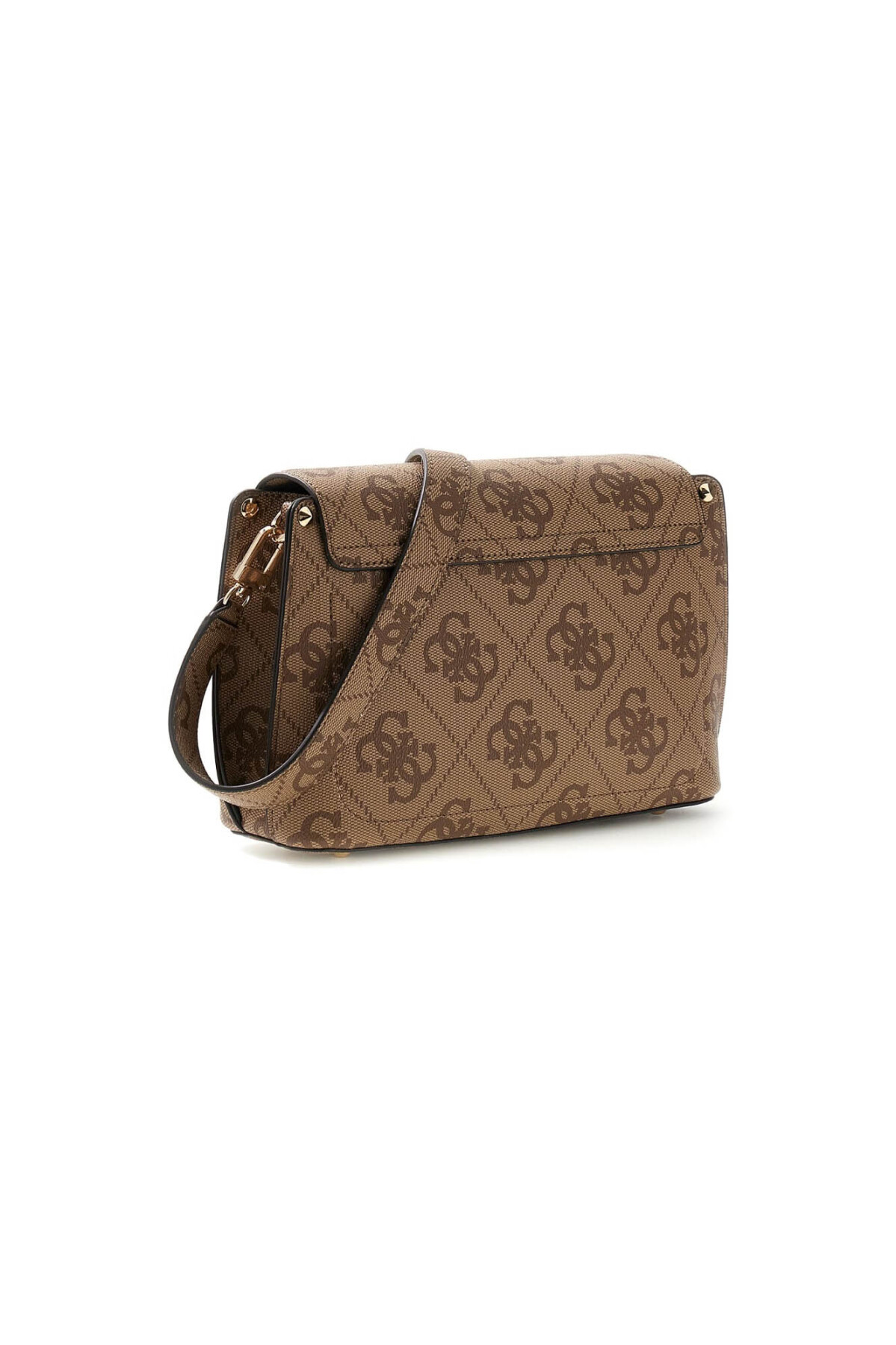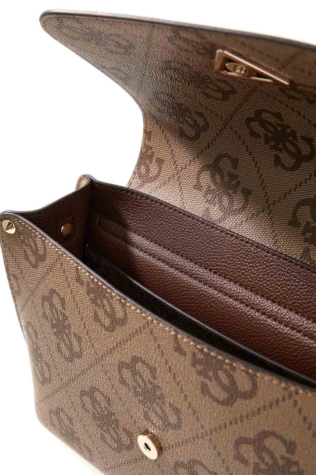 İkonik Guess estetiğini klasik ve fonksiyonel bir formla buluşturan bu omuz çantası, her mevsim stilinize sofistike bir dokunuş katıyor. %100 poliüretan içerikli yüksek kaliteli deri görünümlü yapısı, tüm yüzeye uygulanan koyu kahverengi ikonik "4G" logo baskısıyla markanın zamansız mirasını yansıtır. Çantanın ön panelinde yer alan metalik Guess üçgen logosu, tasarıma rafine ve prestijli bir imza ekler.