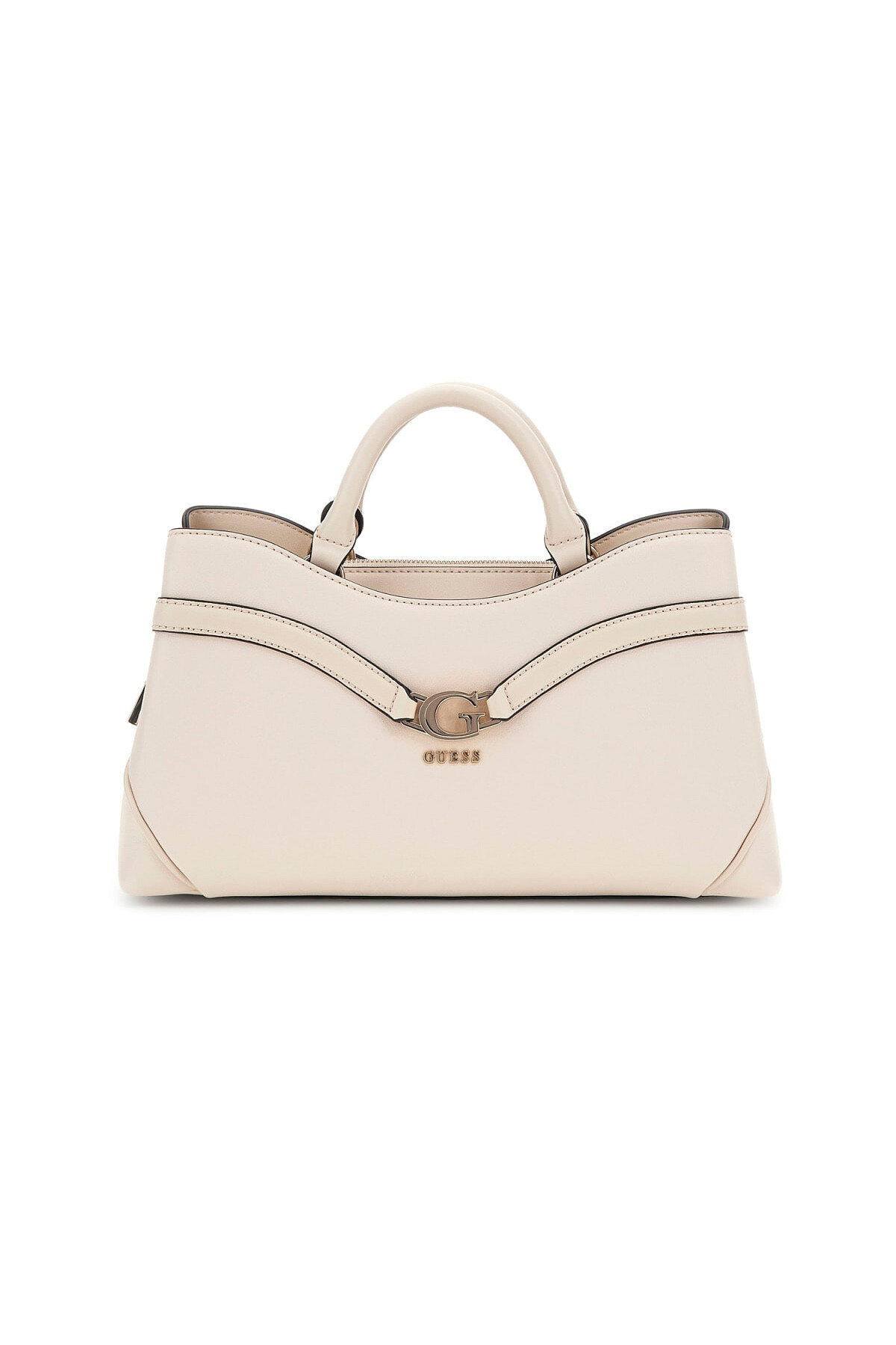 Modern ve şık bir tasarıma sahip bu el çantası, yanlara doğru genişleyen "kanat" formuyla dikkat çeker. Pürüzsüz kırık beyaz yüzeyi ve ön kısmındaki kemer detayı, çantaya sofistike bir kimlik kazandırır. Ön yüzeydeki parlak metal harf logosu, tasarıma zarif bir imza atar. Fermuarlı kapanışı ve arkadaki fermuarlı cebi, günlük kullanımda fonksiyonellik ve şıklığı bir araya getirir.