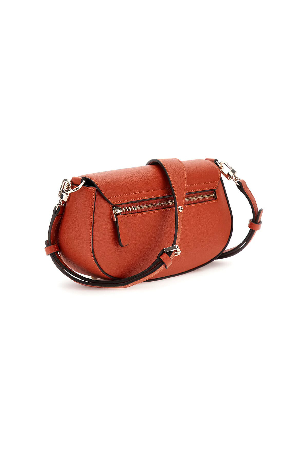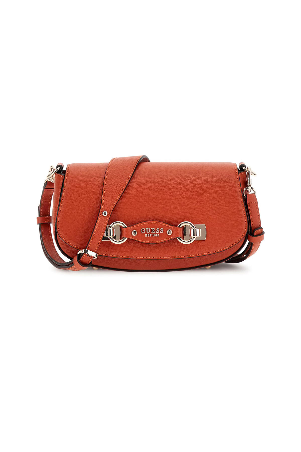 Modern ve şık bir "saddle" formuna sahip bu omuz çantası, günlük stilinize canlı bir dokunuş katar. Pürüzsüz yüzeyi ve zengin kiremit rengi, ön yüzdeki parlak metal halka detaylarıyla sofistike bir bütünlük oluşturur. Ayarlanabilir omuz askısı kişiselleştirilmiş bir konfor sunarken, arka kısmındaki fermuarlı cep, sık kullandığınız eşyalarınız için pratik bir erişim sağlar.