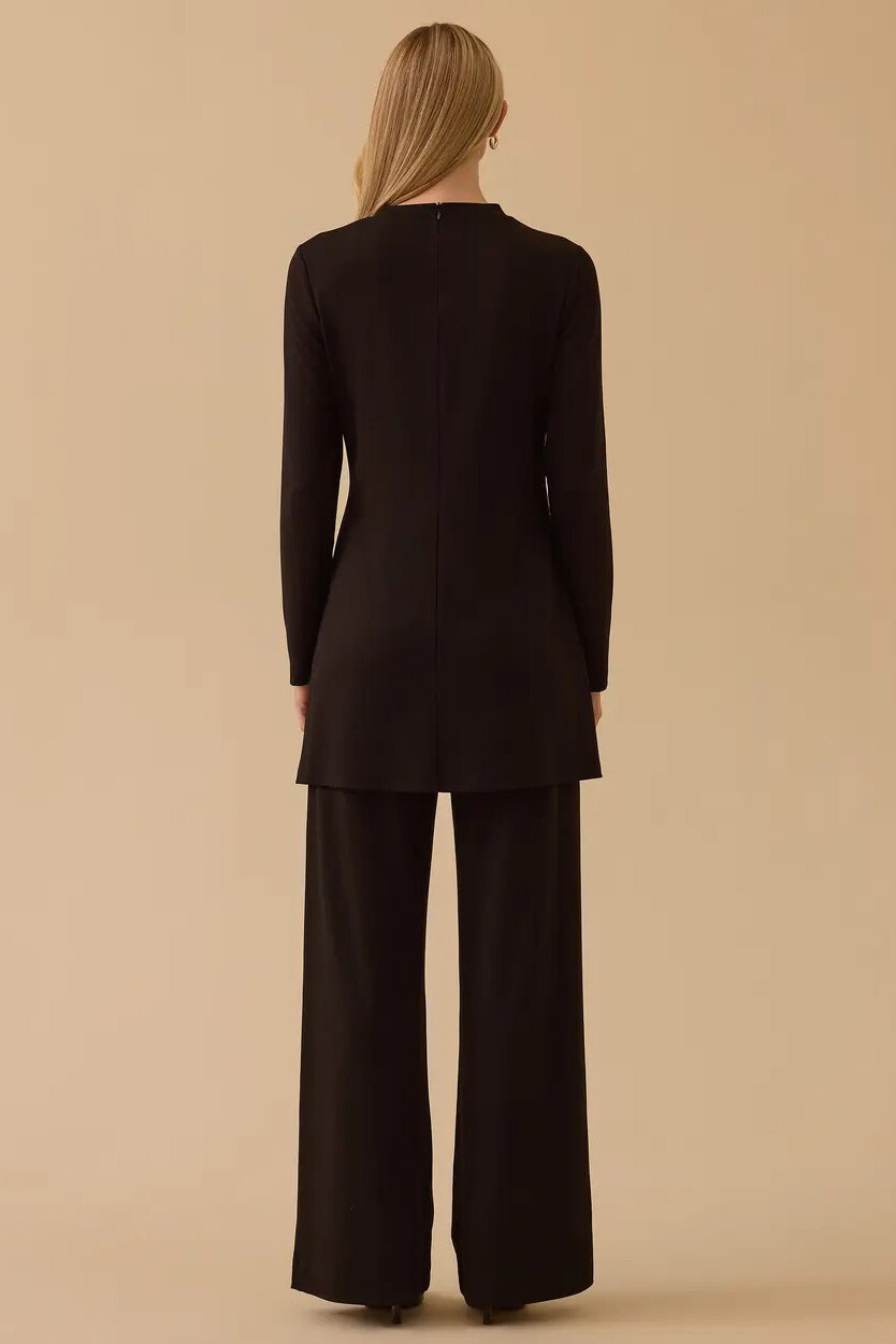Tuniğin vücut hatlarını zarifçe takip eden kesimi ve pantolonun rahat formu, hem ofis şıklığında hem de özel davetlerde konforunuzdan ödün vermeden asil görünmenizi sağlar. Esnek kumaş yapısı sayesinde gün boyu hareket özgürlüğü sunan bu ikili set, gardırobunuzun en kurtarıcı ve iddialı parçalarından biri olacak.
