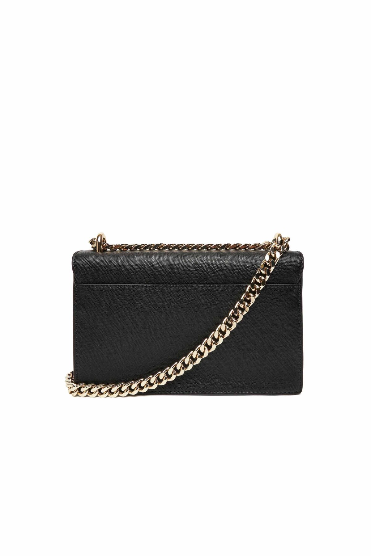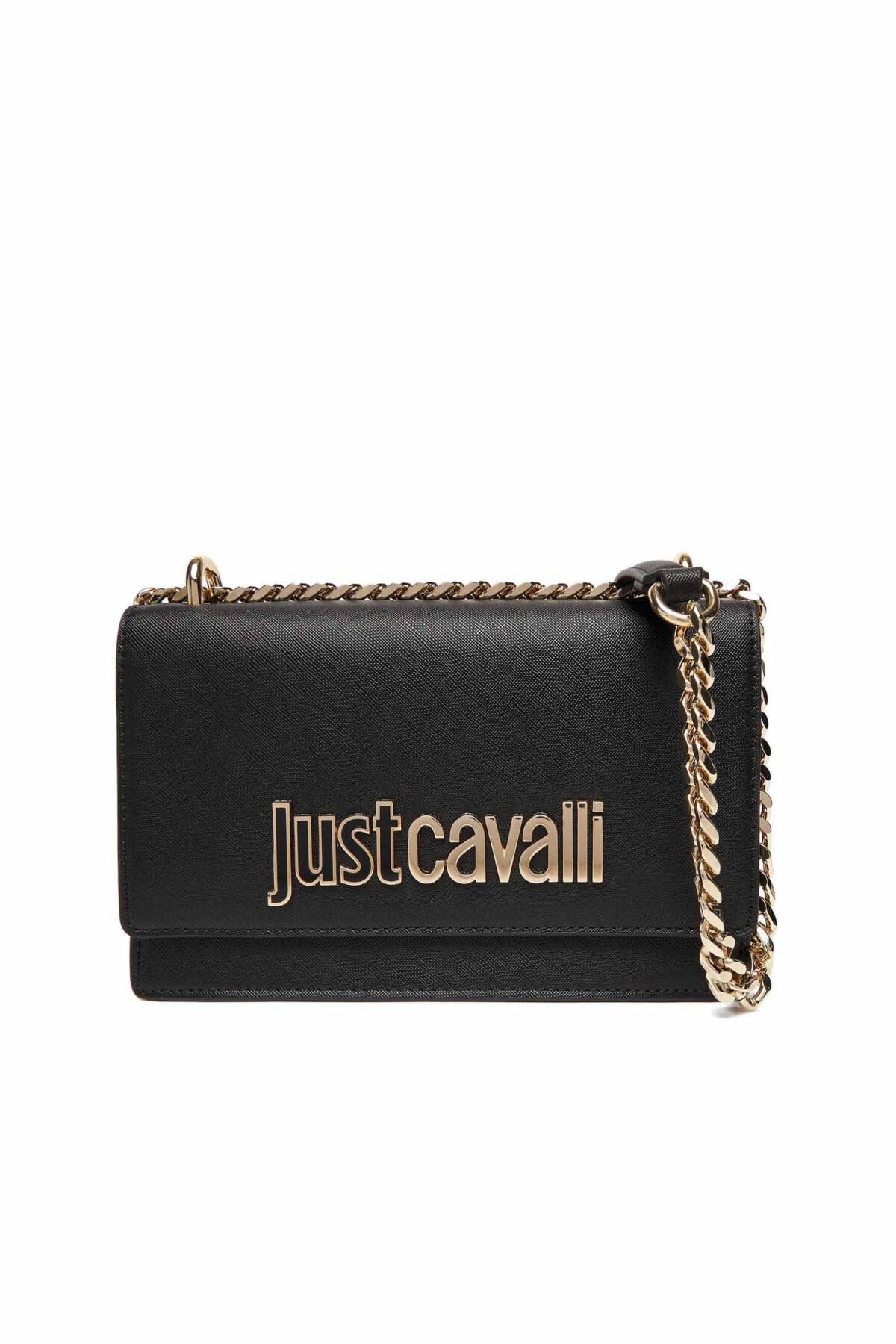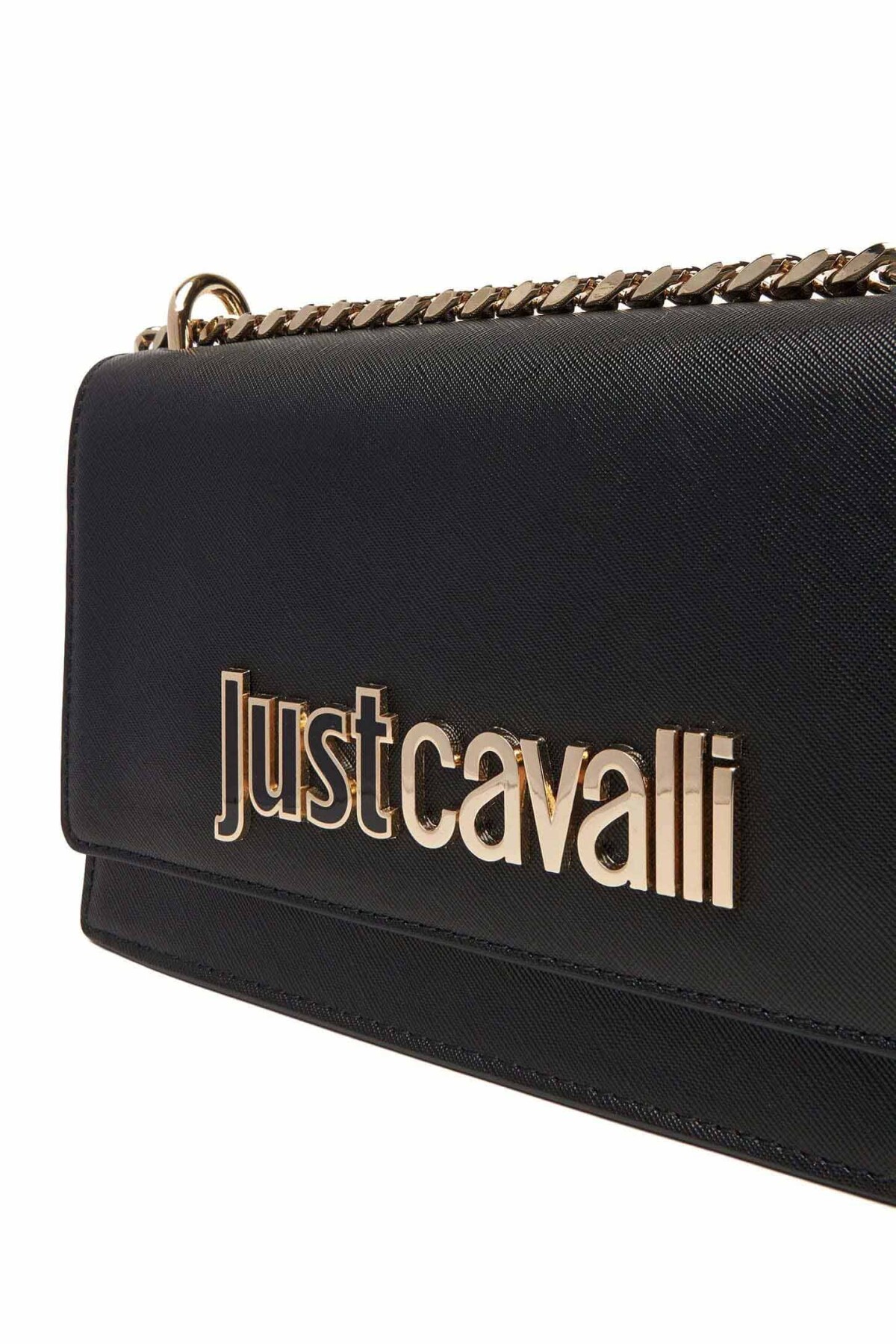Siyahın zamansız şıklığını Just Cavalli'nin cesur tasarım diliyle birleştiren bu çanta, Saffiano dokusunun karakteristik çapraz taramalı yüzeyi sayesinde hem çizilmelere karşı dayanıklı bir yapı sunar hem de lüks bir duruş sergiler. Tasarımın odak noktası olan ön kapaktaki altın renkli "Just Cavalli" metal harf logosu, modele ışıltılı ve prestijli bir karakter kazandırır. Zincir ve suni deri karışımlı askı tasarımı, çantayı hem omuzda (30 cm) hem de çapraz (55 cm) olarak kullanmanıza olanak tanıyarak gündüzden geceye şık bir geçiş sağlar. Kompakt dikdörtgen formu, telefon ve cüzdan gibi temel ihtiyaçlarınızı taşımanız için idealdir.