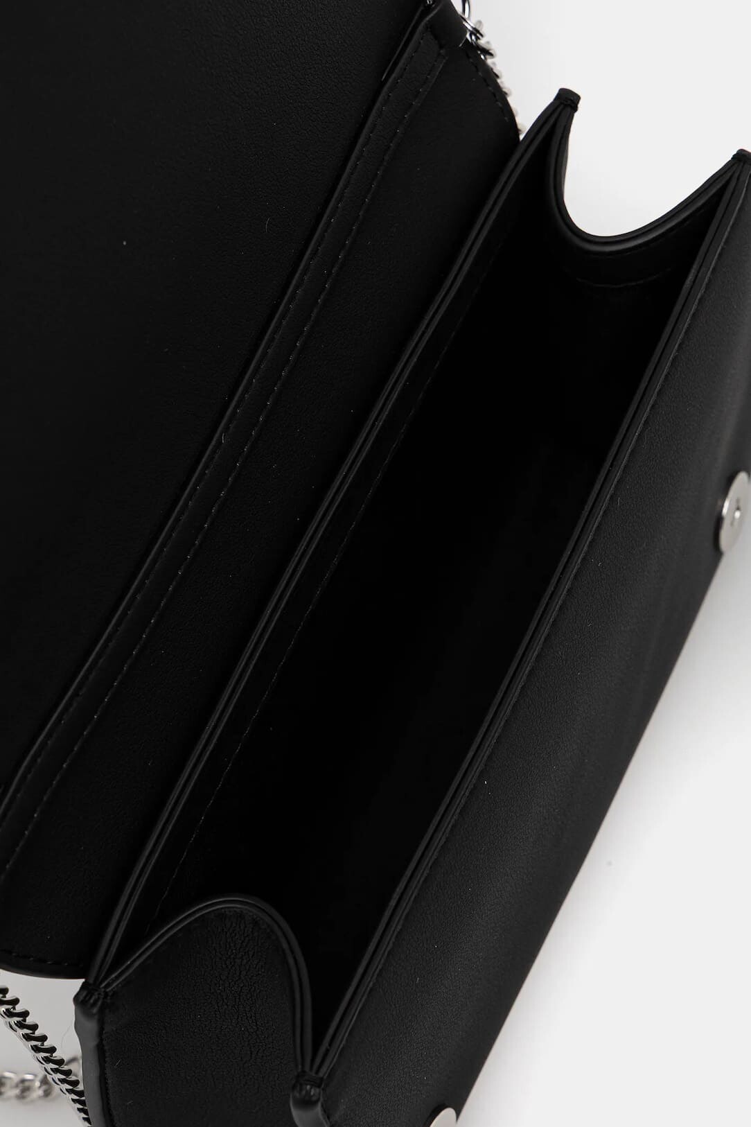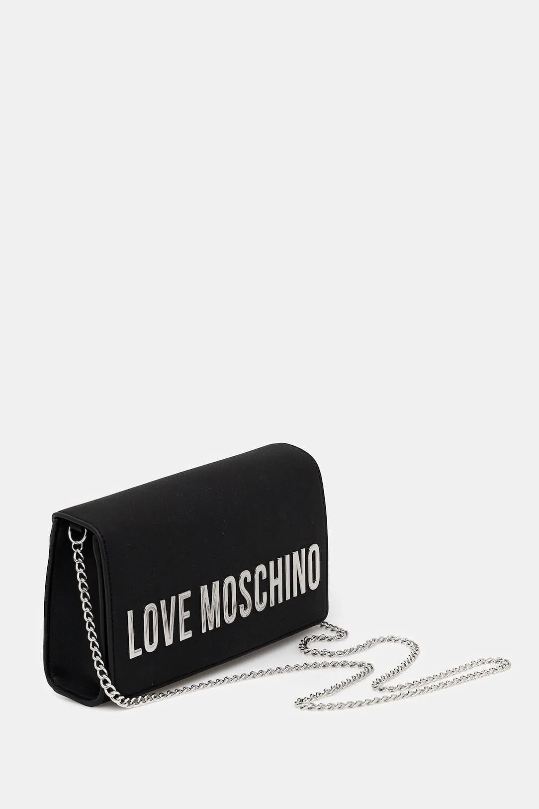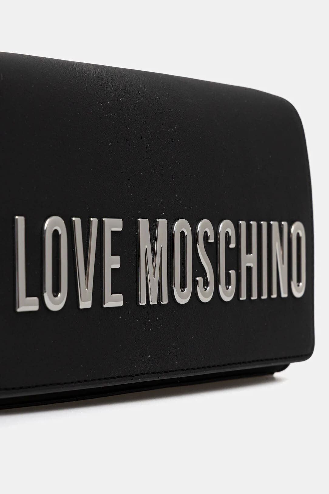Modern ve minimalist tasarımıyla dikkat çeken bu siyah omuz çantası, şıklığı pratiklikle buluşturuyor. Pürüzsüz dokulu yüzeyi, ön kapak üzerinde yer alan büyük ve parlak gümüş renkli metal harf detaylarıyla hareketlendirilerek iddialı bir görünüm kazanmıştır. Zarif gümüş renkli zincir askısı, çantayı hem omuzda hem de çapraz olarak kullanmanıza olanak tanır. Kompakt yapısı ve kapaklı tasarımıyla, telefon, cüzdan gibi temel ihtiyaçlarınızı şık bir şekilde taşımanız için idealdir.