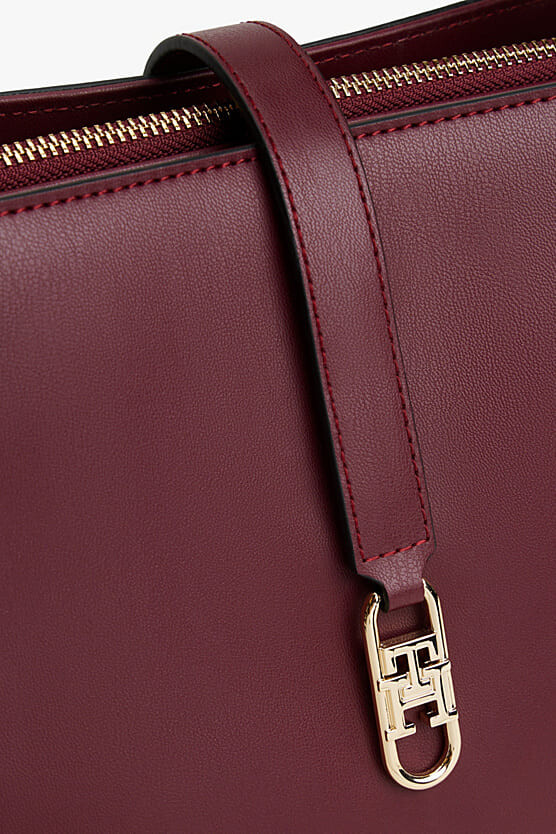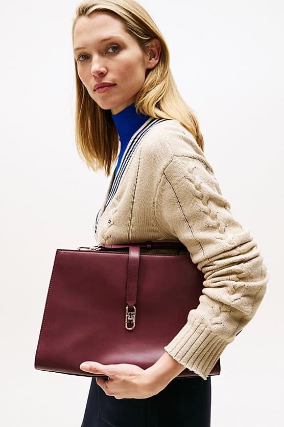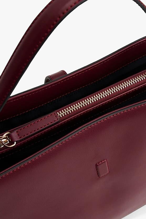 Görünümünüzü tamamlayacak bu çok yönlü ve sofistike çanta, göz alıcı monogram detayıyla öne çıkıyor. Pürüzsüz poliüretan malzemeden üretilen yapısal silüeti, zengin bordo rengiyle zarif bir stil sunar. Akıllıca tasarlanmış iç hacmi, biri fermuarlı orta bölme ve ekstra bir fermuarlı cep olmak üzere birden fazla bölmeye ayrılarak eşyalarınızı mükemmel bir şekilde düzenlemenize yardımcı olur. Çantayı ister şık el askısıyla, isterseniz de çıkarılabilir çapraz askısıyla kullanarak stilinizi çeşitlendirebilirsiniz.