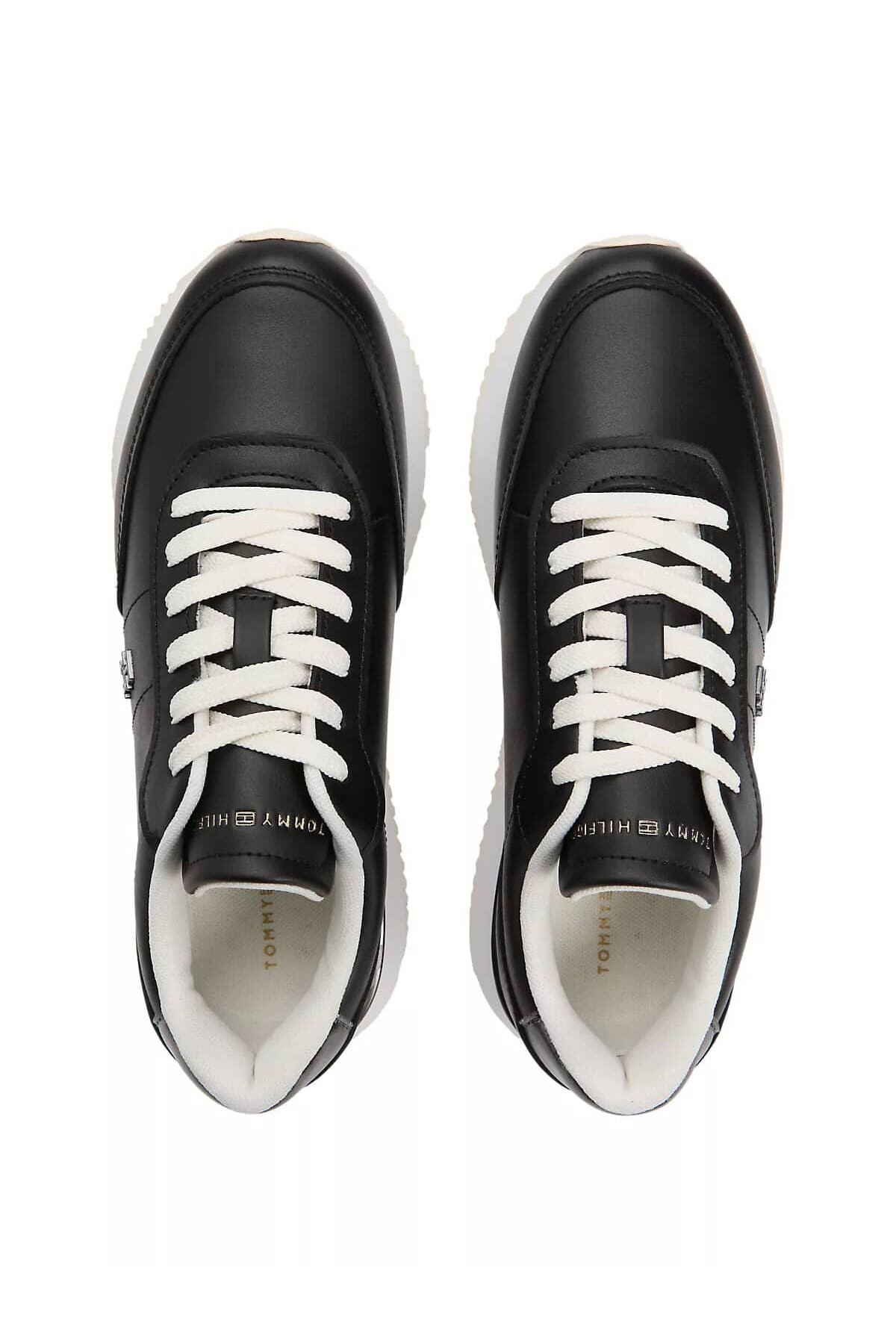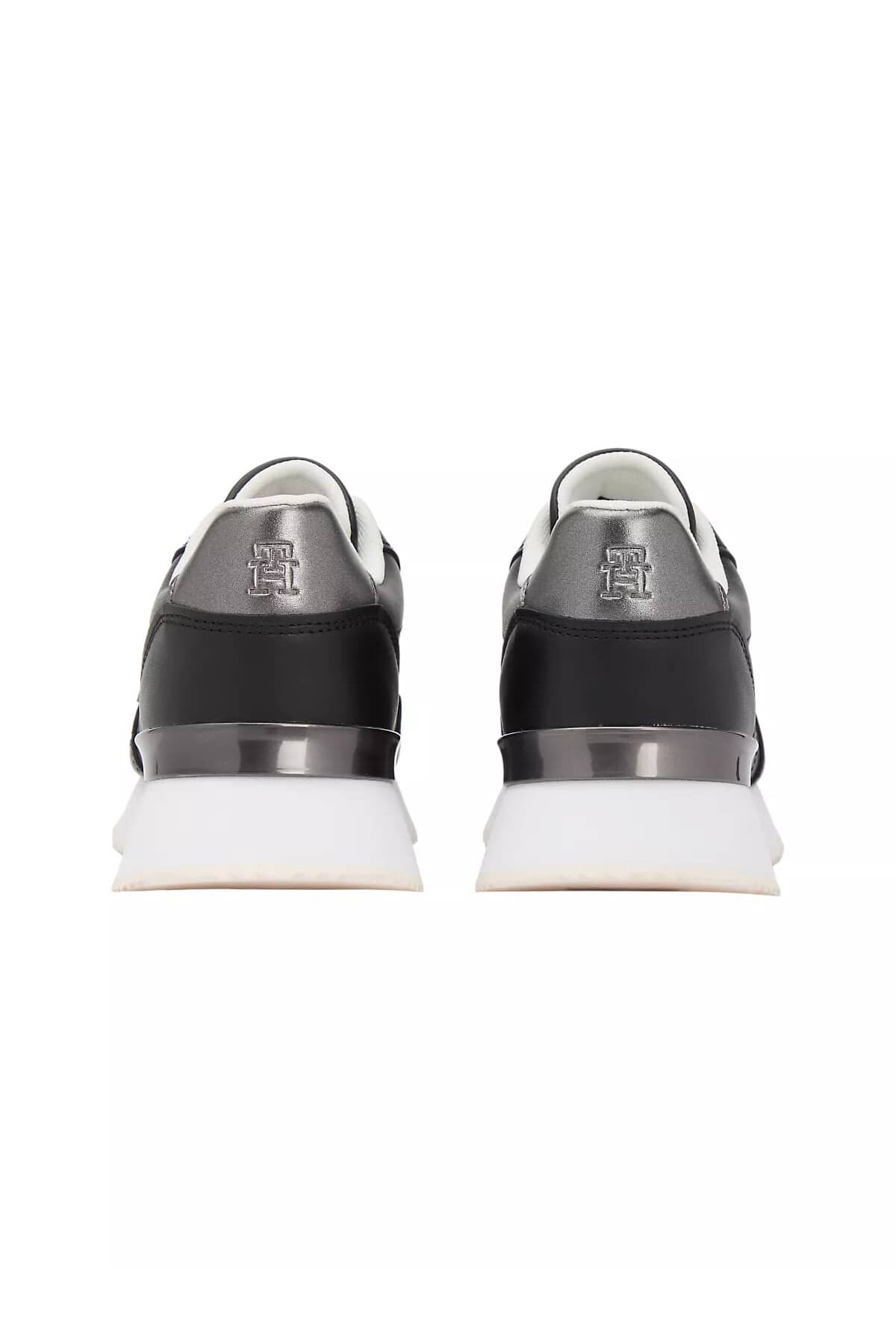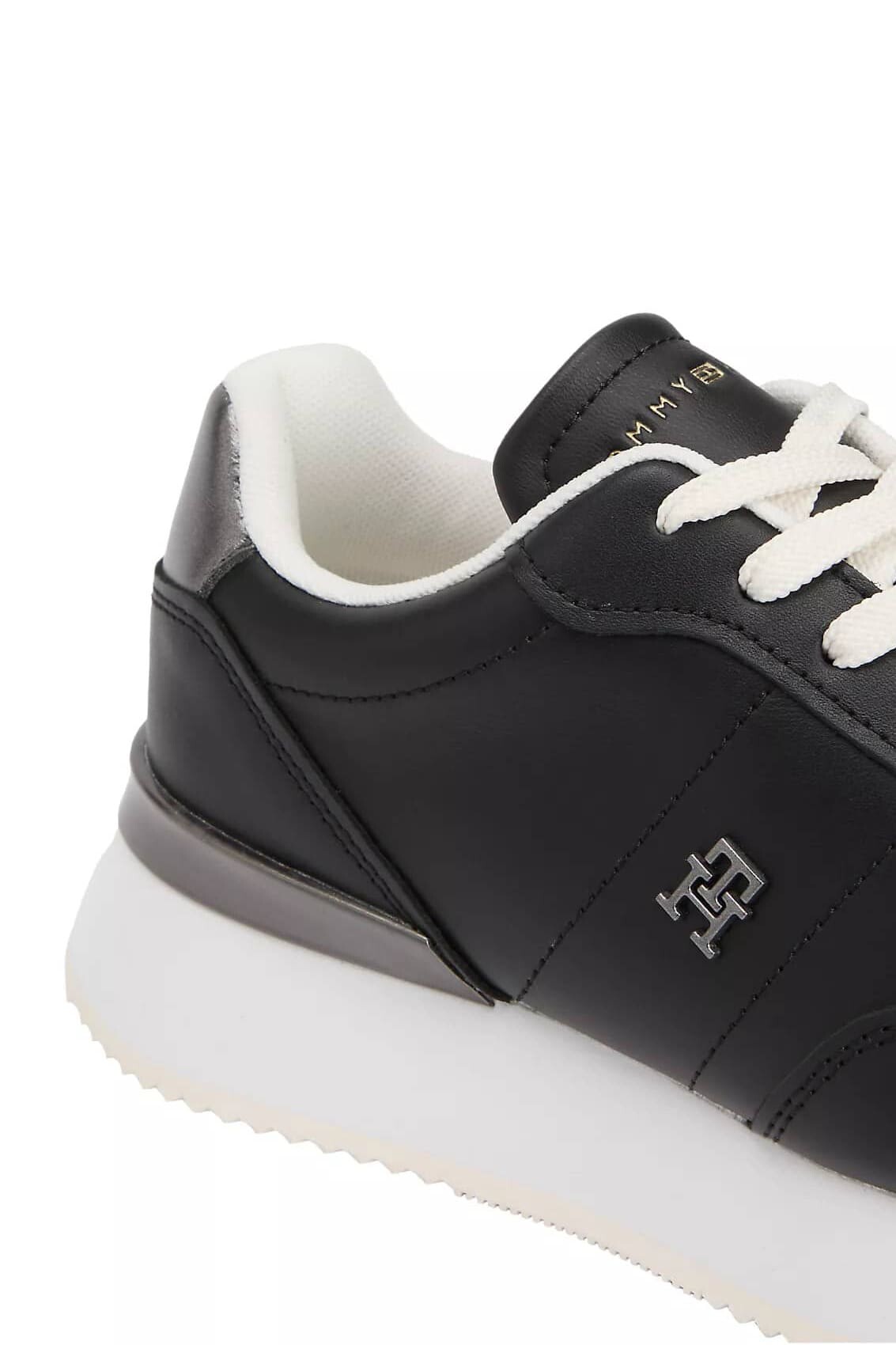 Sportif runner silüetini, şık ve modern detaylarla birleştiren bu sneaker, günlük stilinize sofistike bir dokunuş katıyor. Siyah üst yüzeyi, topukta ve tabandaki parlak metalik detaylarla zenginleştirilerek dinamik bir görünüm kazanır. Hafif ve konforlu tabanı, gün boyu rahat adımlar atmanızı sağlarken, zarif tasarımı her türlü kombinle kolayca uyum sağlar. Yan kısımdaki kabartma logosu, tasarımın kalitesini belli eder.