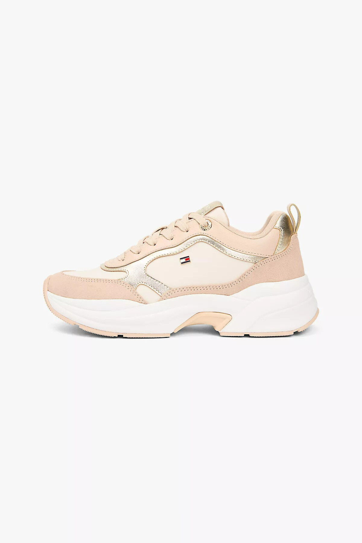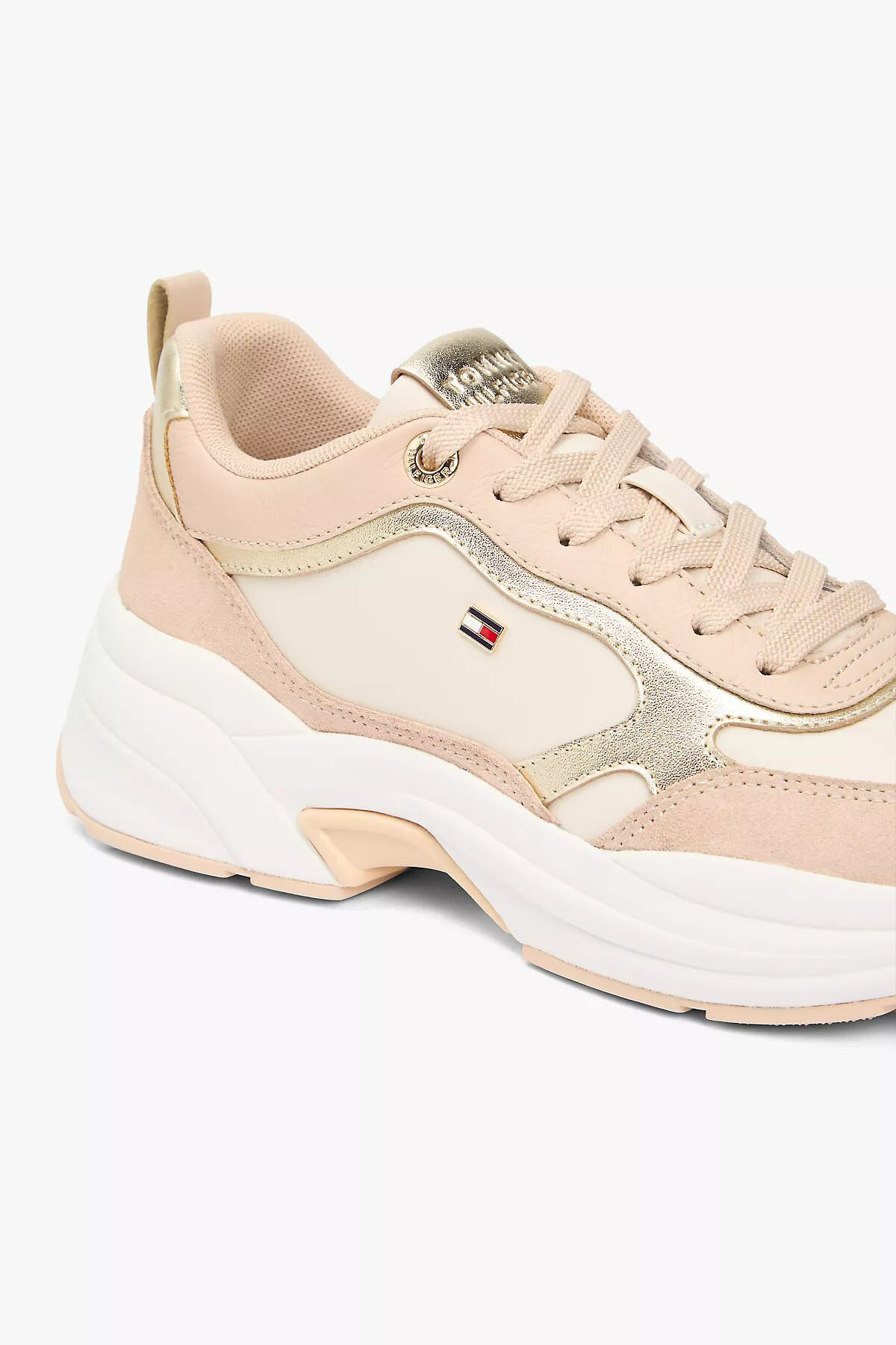 %100 Nappa derinin sunduğu üstün yumuşaklık ve dayanıklılığı modern sokak modasının favorisi Chunky kalın taban tasarımıyla birleştiren bu sneaker, gün boyu süren konforu göz alıcı bir şıklıkla sunar. Krem ve altın tonlarının sakin uyumu, yan panellerde, topukta ve dil kısmında kullanılan metalik detaylarla hareketlendirilerek tasarıma lüks ve enerjik bir hava katar. Yüksek ve destekleyici taban yapısı her adımda rahatlık sağlarken, yan kısımdaki ikonik minimal logo detayı ve zarif dikiş işçiliği, spor kombilerinize sofistike bir imza dokunuşu ekler.