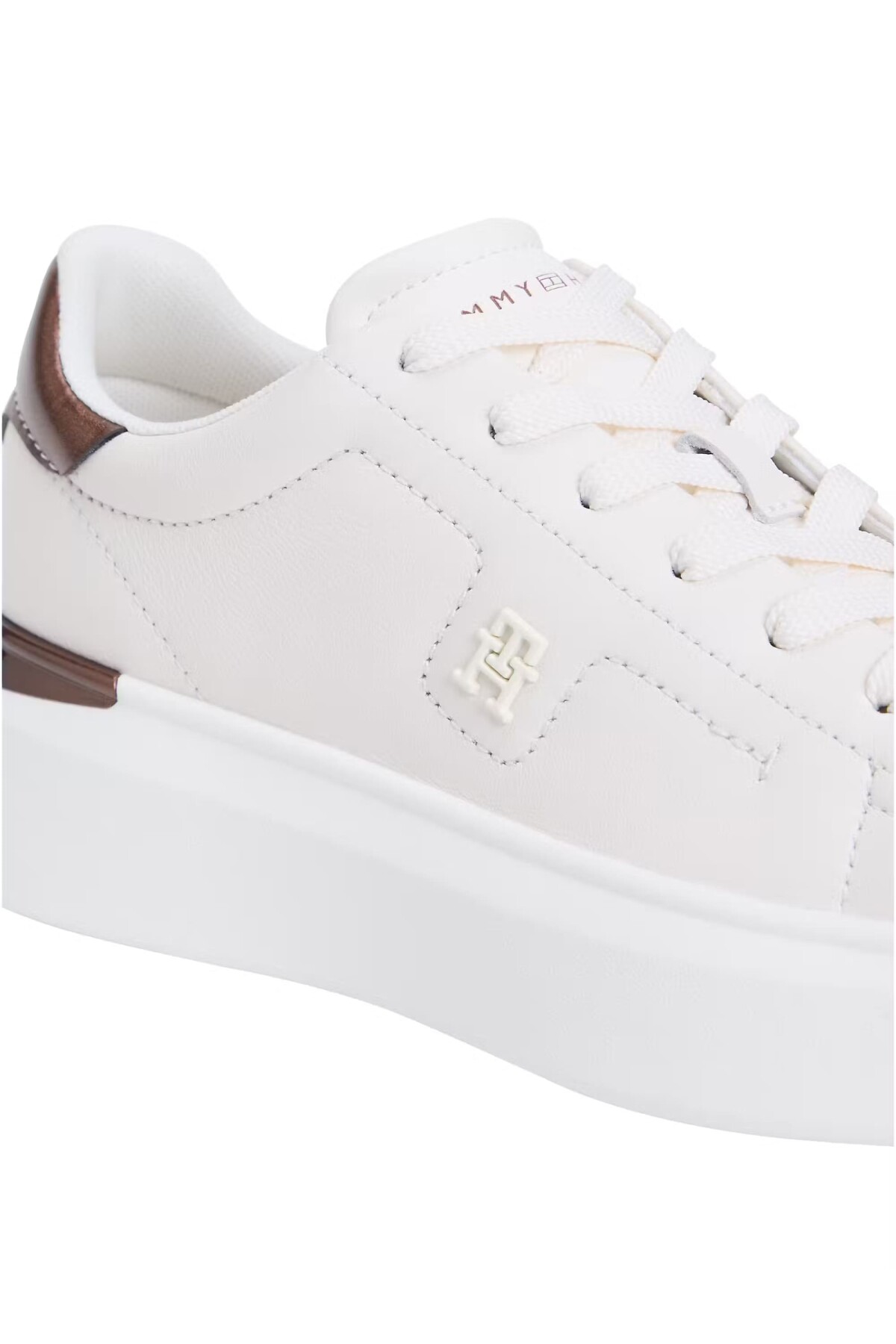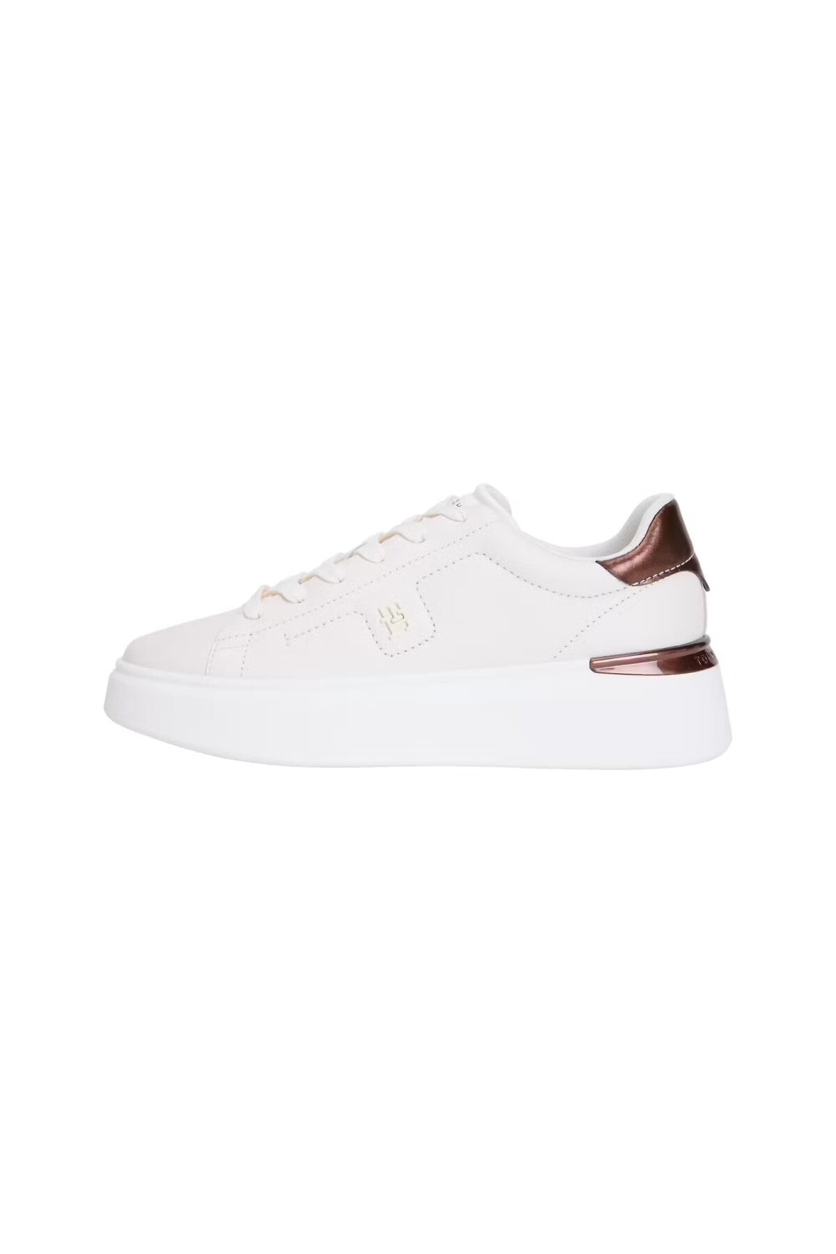 Kadın Metalik Detaylı Platform Tabanlı Sneaker - Beyaz/Bronz