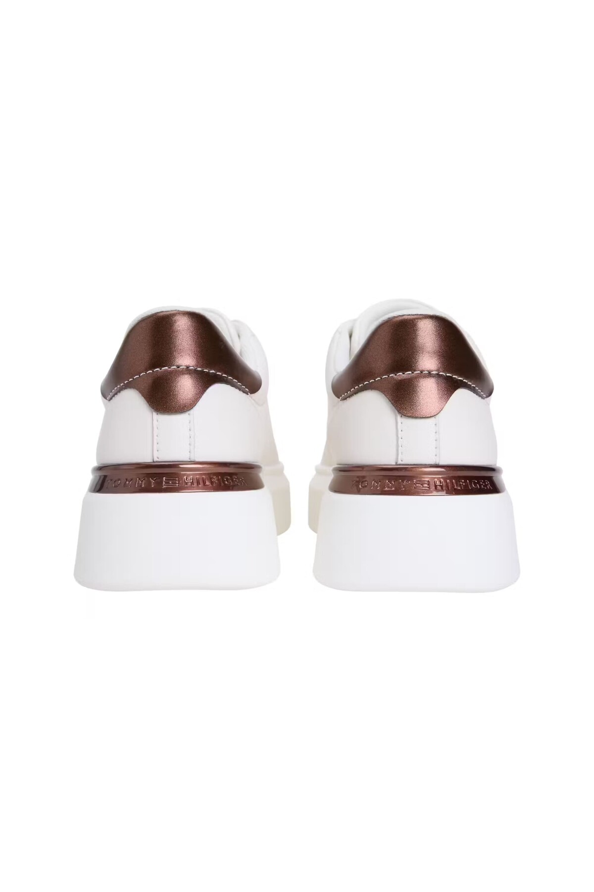 Klasik sneaker tasarımını, trend platform tabanla birleştiren bu ayakkabı, stilinize modern bir dokunuş katıyor. Sade ve şık beyaz üst kısım, topuk ve tabandaki göz alıcı metalik detaylarla zenginleştirilmiştir. Yüksek platform tabanı, hem konforlu bir kullanım sunar hem de boyunuza zarif bir yükseklik katar. Her türlü jean, etek ve elbiseyle kolayca kombinlenebilen bu sneaker, gardırobunuzun favori parçası olacak.
