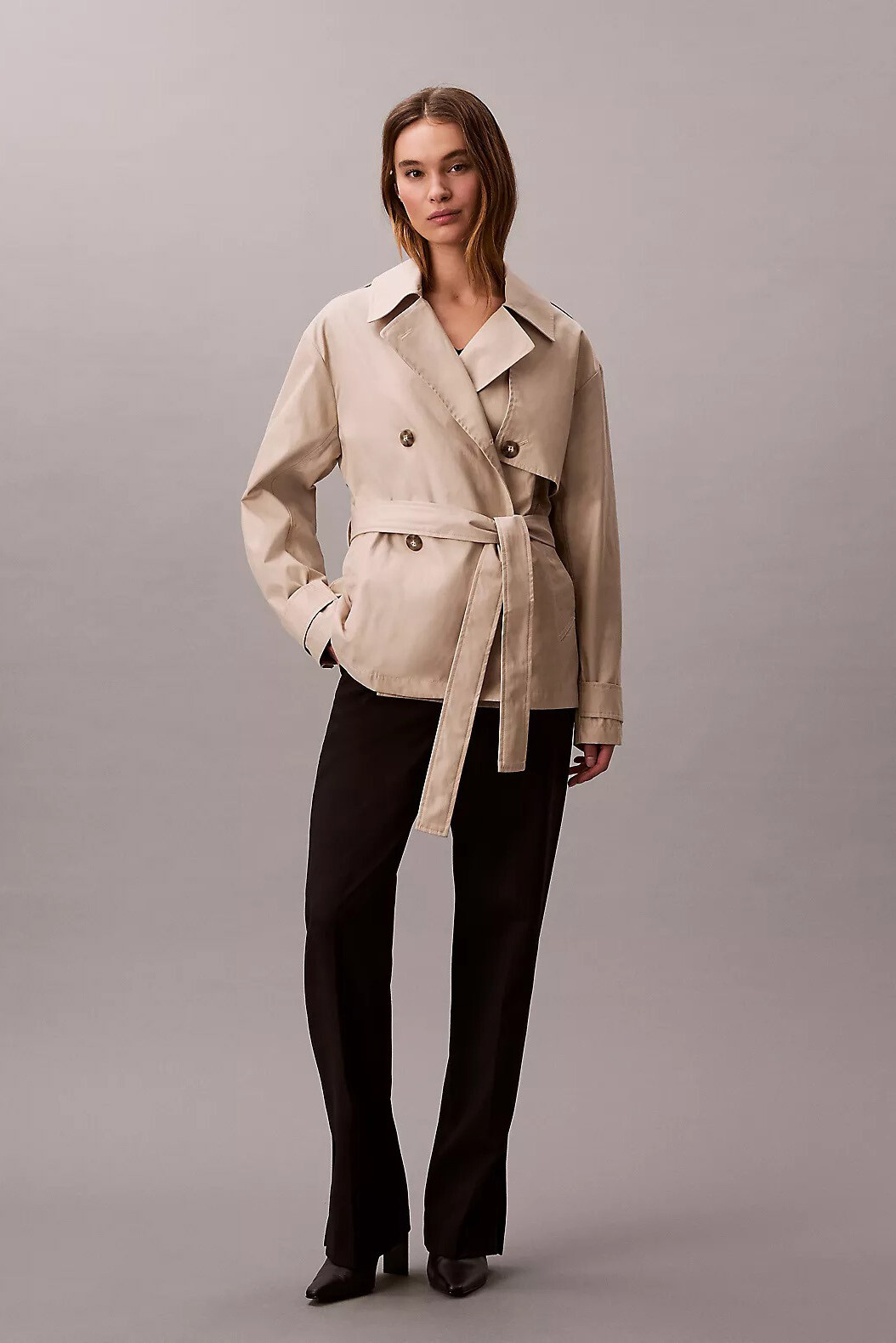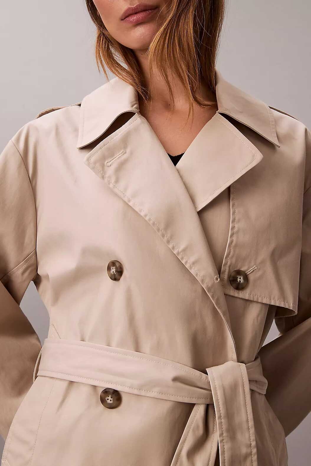 Tasarım: Mid-length (orta boy), kruvaze düğmeli, kuşaklı