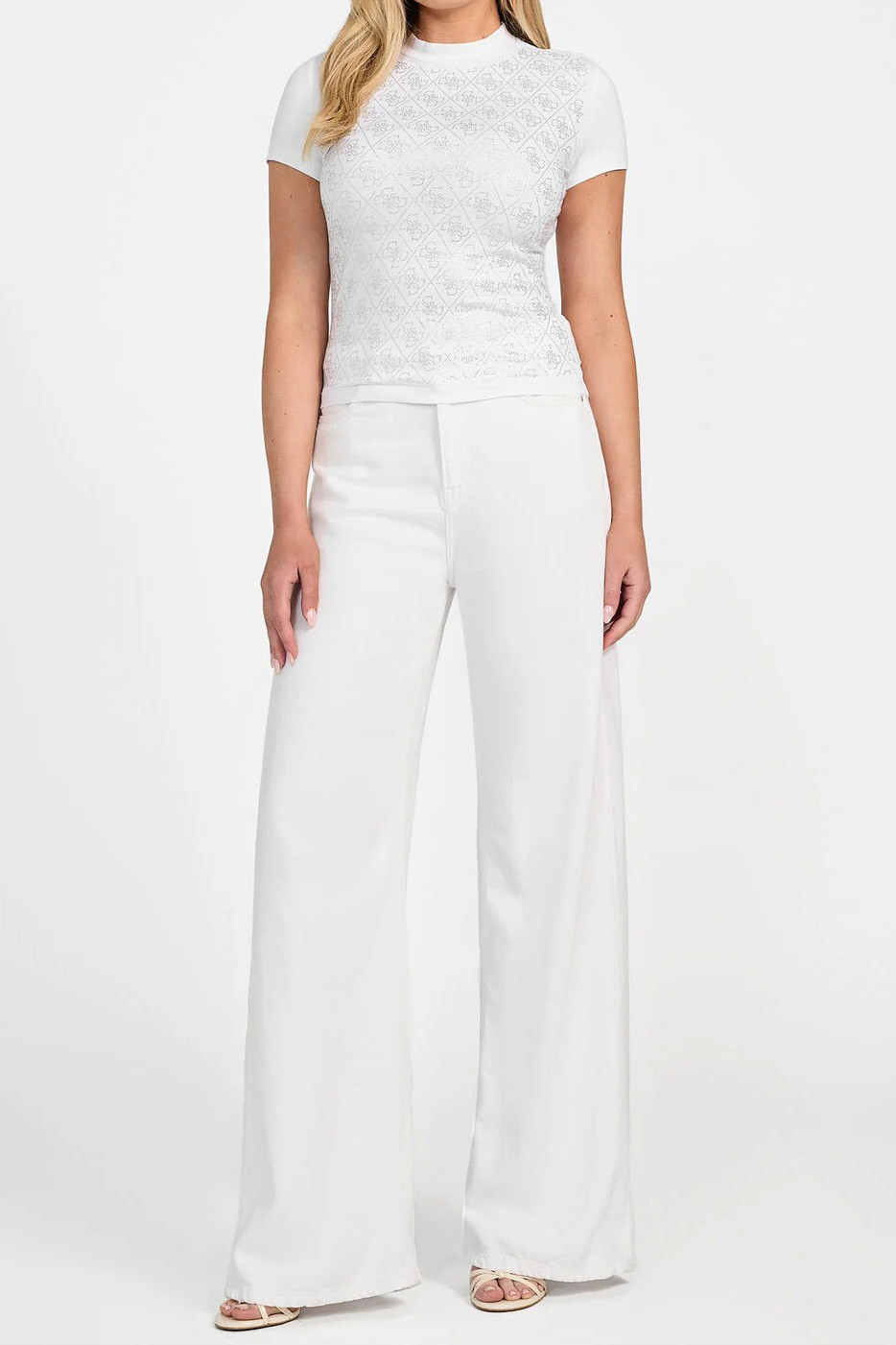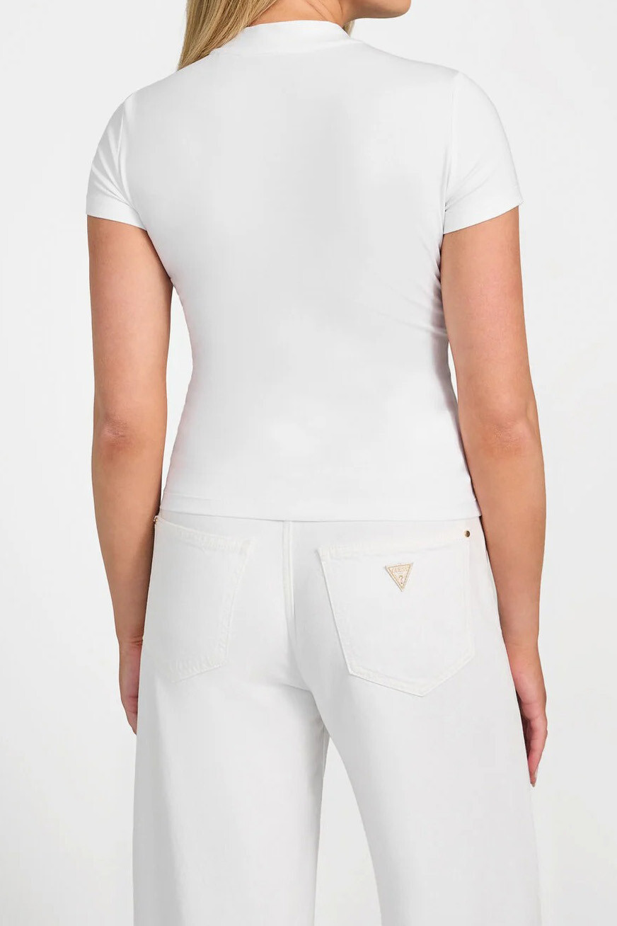 Gardırobunuzun en temel ve vazgeçilmez parçası olmaya aday bu t-shirt, saf beyazın zarafetini minimalist bir tasarımla buluşturuyor. Göğüs kısmında yer alan ikonik ve şık logo işlemesi, sade tasarımına markanın imza dokunuşunu katıyor. Yüksek kaliteli pamuk karışımlı dokusu, yumuşaklığı ve nefes alabilen yapısıyla gün boyu üstün konfor sunarken; tam kalıp kesimi vücut hatlarınıza kusursuz bir uyum sağlar. Hem şık bir ceketin içinde hem de tek başına jean pantolonlarla kombinleyebileceğiniz bu parça, çabasız şıklığın tanımını yeniden yapıyor.