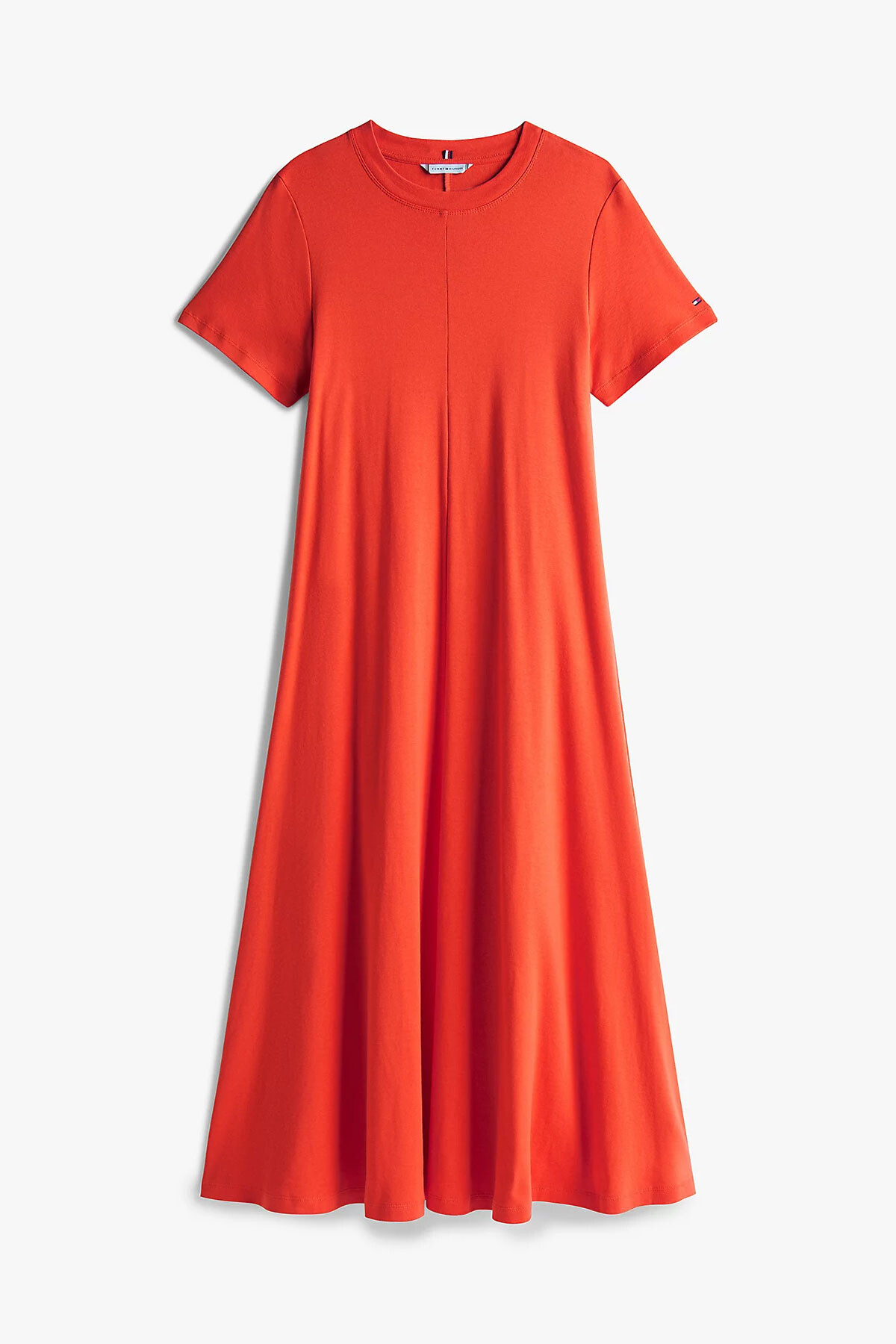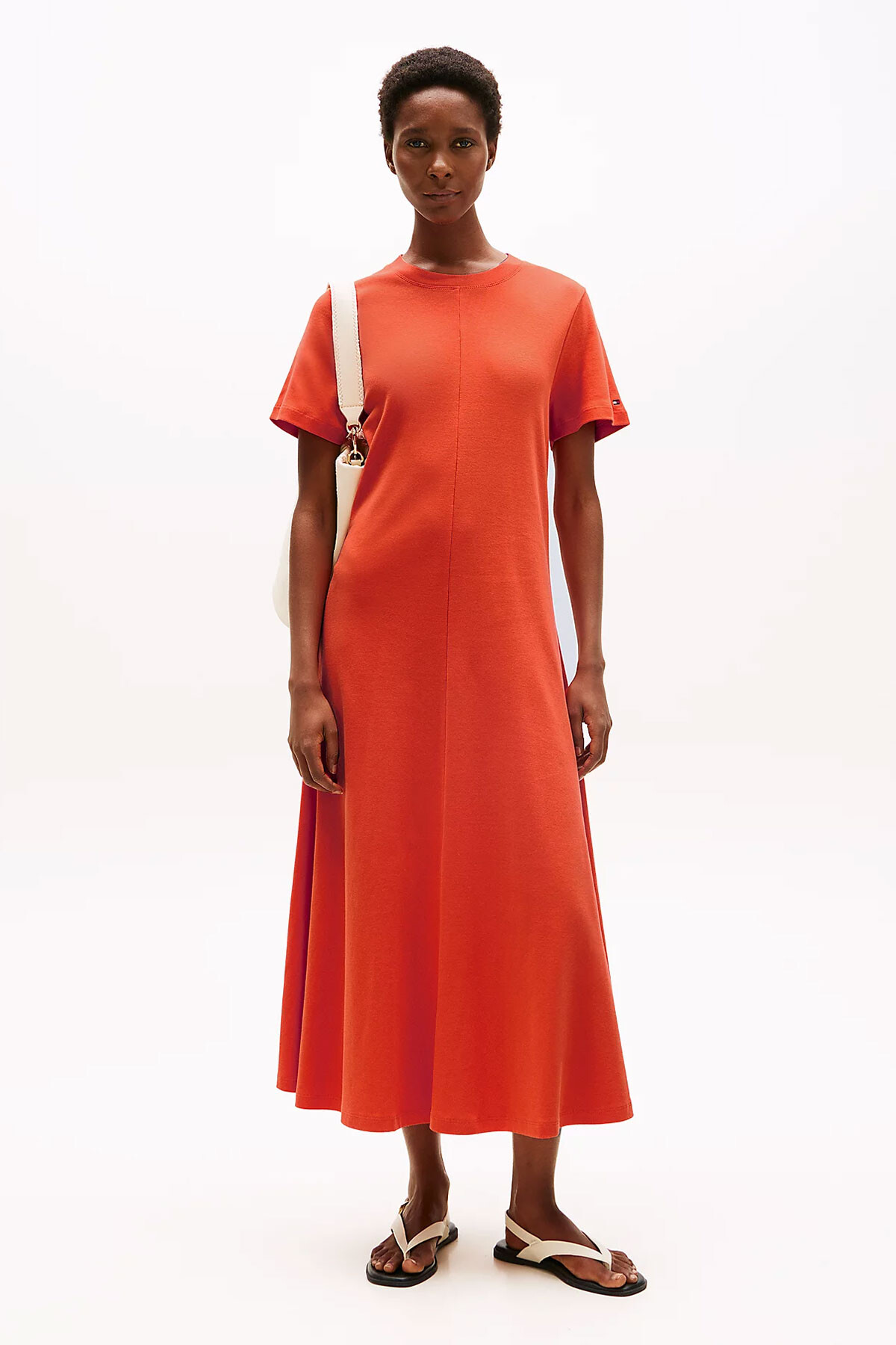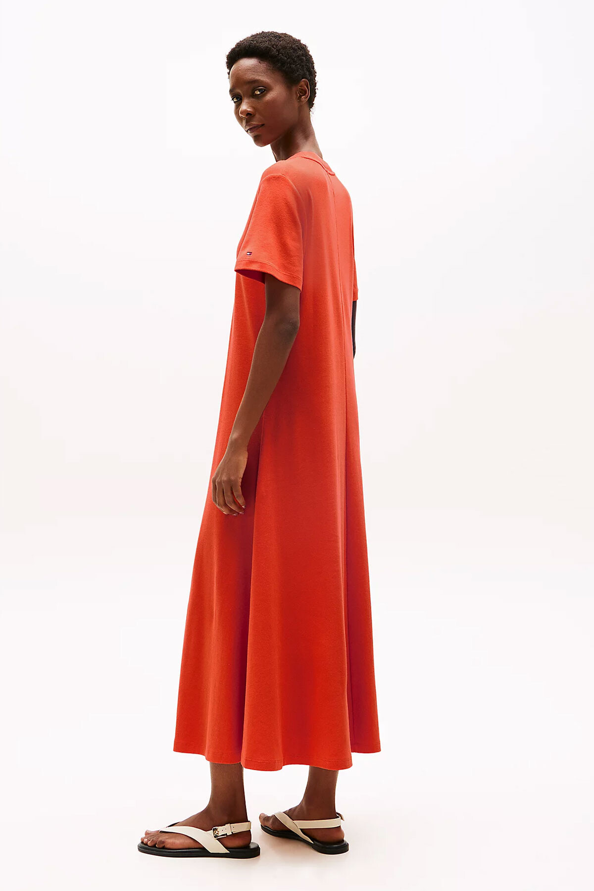 %100 pamuk Modern Cody elbise, rahat kesimiyle hem gündelik hem de şık kombinlere uygun bir parça. Slub dokulu kumaşı hafif dokunuşlu, yumuşak bir his sunar. Ön ortadaki dikiş detayı ve minimal logolu kısa kollar, sade tasarıma karakter katar. Uzun boyu ve A-form siluetiyle her vücut tipine zarif bir duruş sağlar. Yazın tek başına, serin havalarda hafif bir ceketle tamamlanabilir.