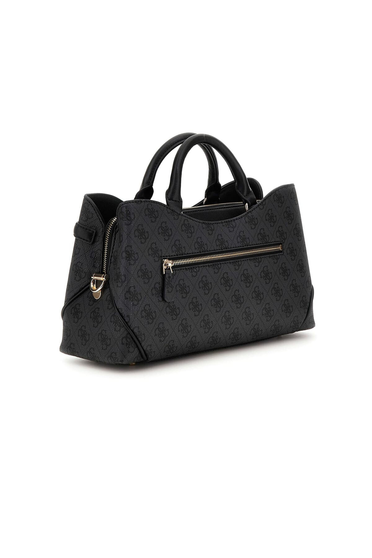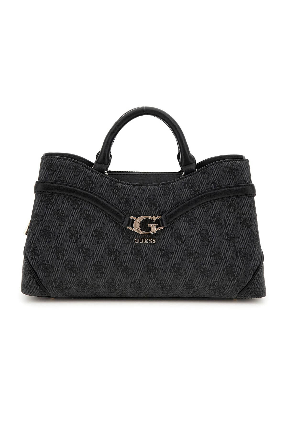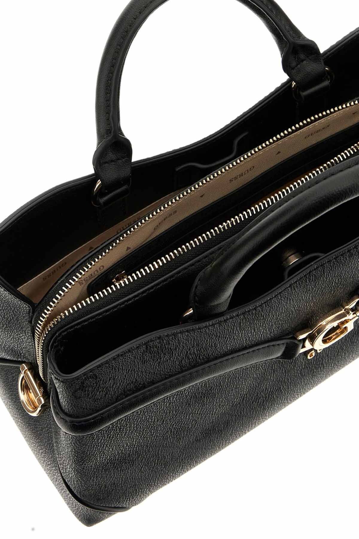 Modern ve şık bir tasarıma sahip bu el çantası, yanlara doğru genişleyen "kanat" formuyla dikkat çeker. Tonal monogram deseniyle kaplı antrasit rengi yüzeyi ve ön kısmındaki kemer detayı, çantaya sofistike bir kimlik kazandırır. Ön yüzeydeki parlak metal harf logosu, tasarıma zarif bir imza atar. Çoklu bölmeli iç tasarımı ve arkadaki fermuarlı cebi, günlük kullanımda fonksiyonellik ve şıklığı bir araya getirir.