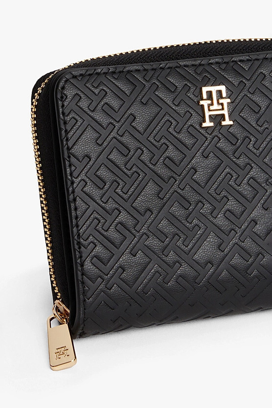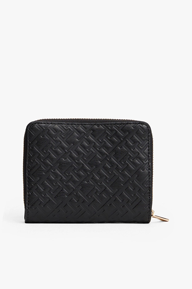 Hem şık hem de fonksiyonel bir tasarım sunan bu cüzdan, günlük kullanım için ideal bir aksesuardır. Tüm yüzeyini kaplayan dokulu kabartma monogram deseni, tasarıma modern ve sofistike bir dokunuş katarken, poliüretan malzemesi dayanıklı bir yapı sunar. Fermuarlı ve çıtçıtlı kapaklı olmak üzere iki ayrı ana bölmeden oluşan cüzdan, eşyalarınızı düzenli bir şekilde saklamanızı sağlar. İçerisindeki çoklu kart bölmeleri ve kağıt para gözü sayesinde tüm ihtiyaçlarınıza cevap verir. Ön yüzdeki parlak metalik monogram amblemi, tasarımı zarif bir şekilde tamamlar.
