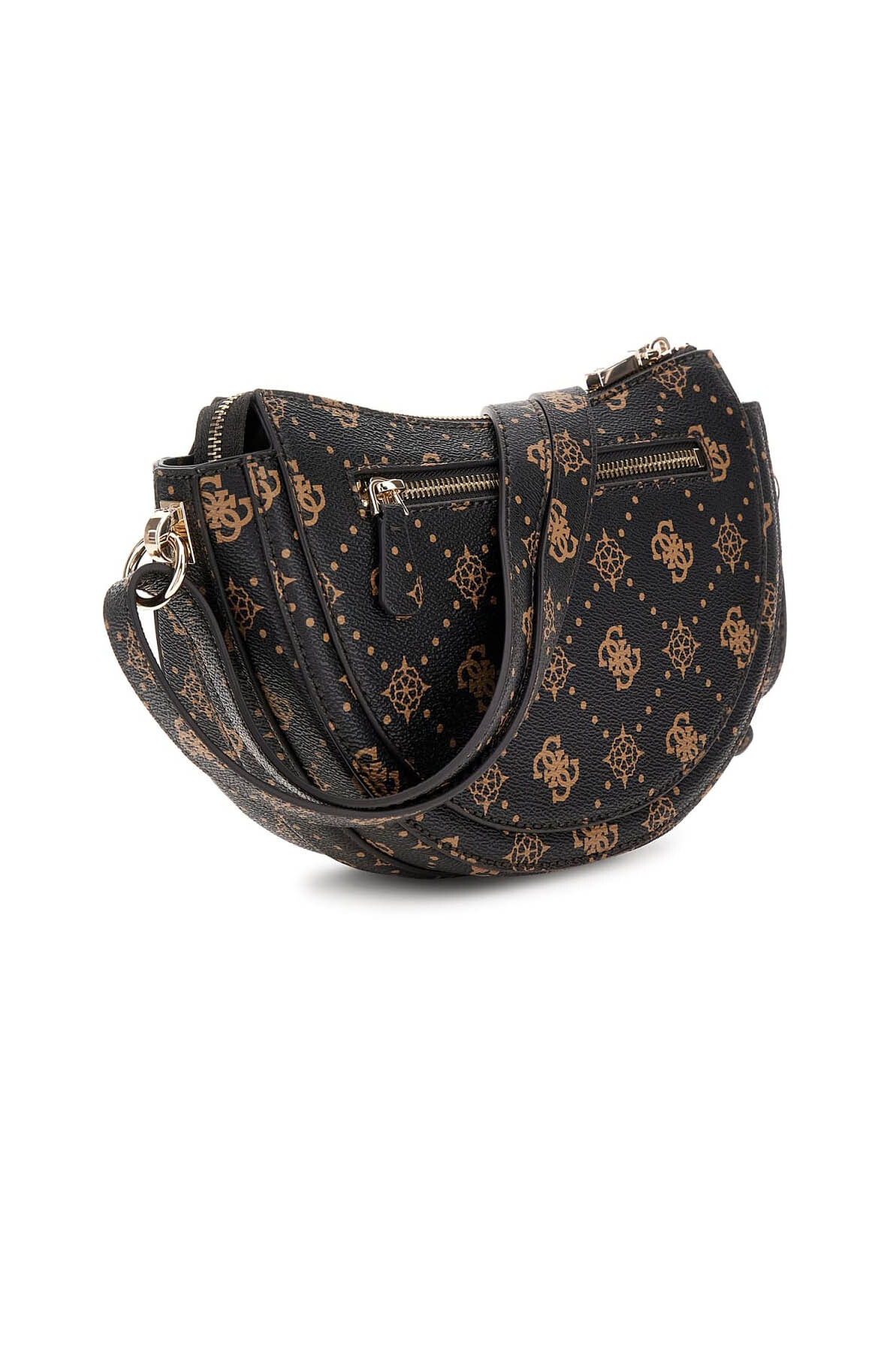Kadın Monogram Desenli Yarım Ay Omuz Çantası - Kahverengi / Siyah