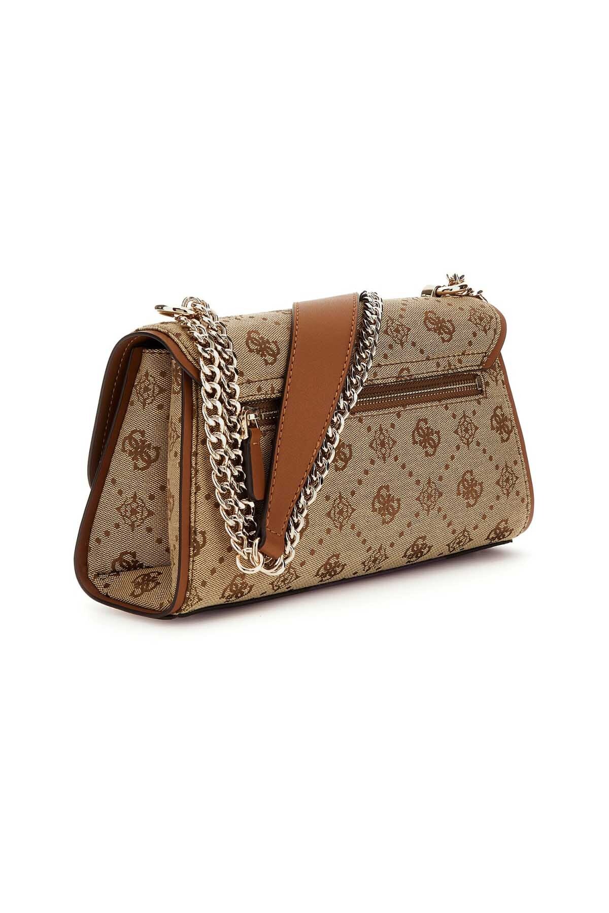Klasik ve şık bir tasarıma sahip bu omuz çantası, monogram desenli gövdesi ve kontrast taba rengi biye detaylarıyla öne çıkar. Yapılandırılmış formu, günlük kullanım için ideal bir hacim sunar. Ön kapak üzerinde yer alan parlak metal harf logosu, çantanın zarif tasarımını tamamlarken, zincir detaylı omuz askısı modern bir dokunuş katar. Arka kısmındaki fermuarlı cep, pratik bir kullanım sağlar.