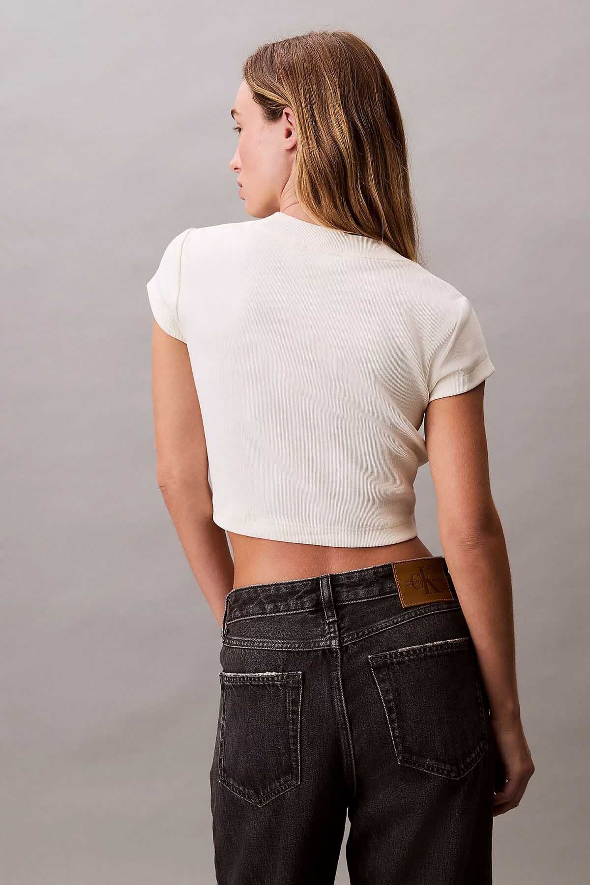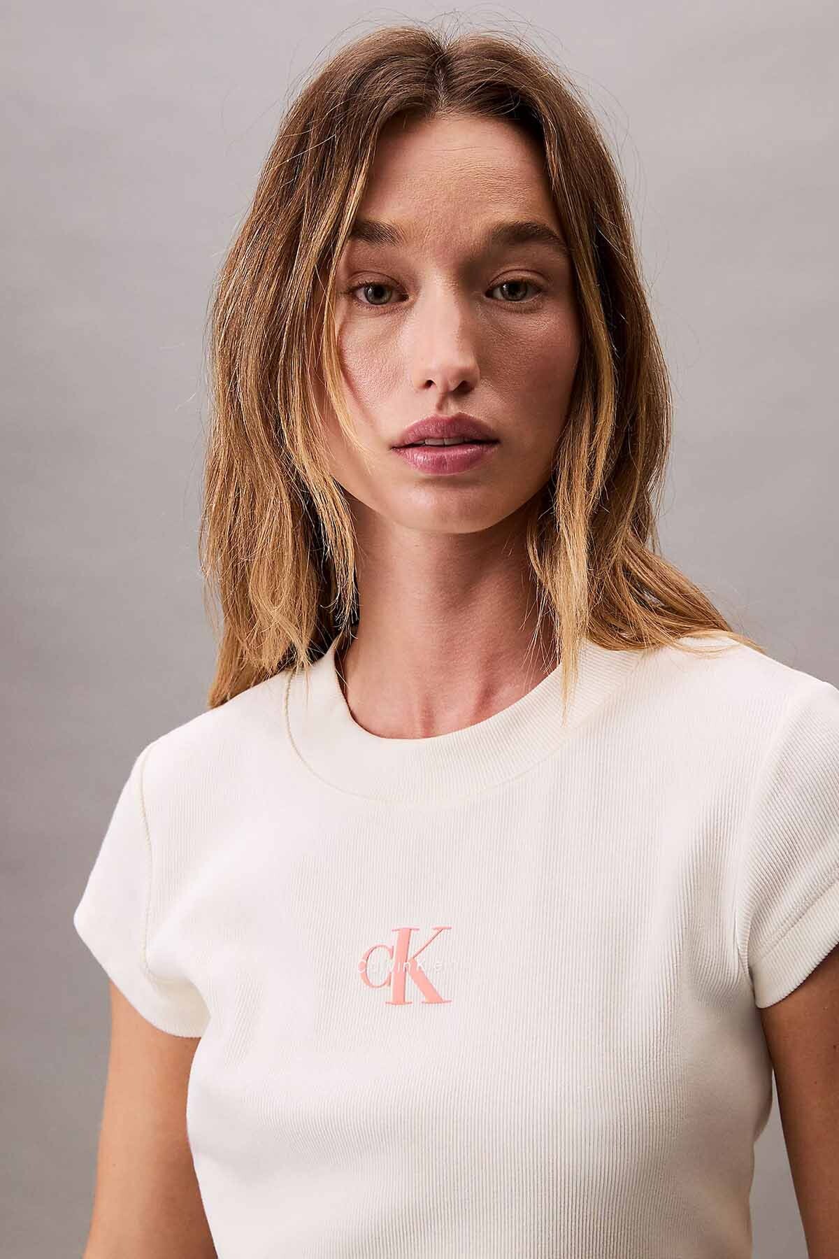 Modern çizgisiyle tasarlanan ekru renkli bu crop tişört, göğüs kısmındaki ikonik pembe CK logosuyla zarif bir görünüm sunar. Pamuk ve elastan karışımı kumaşıyla gün boyu konfor sağlar.