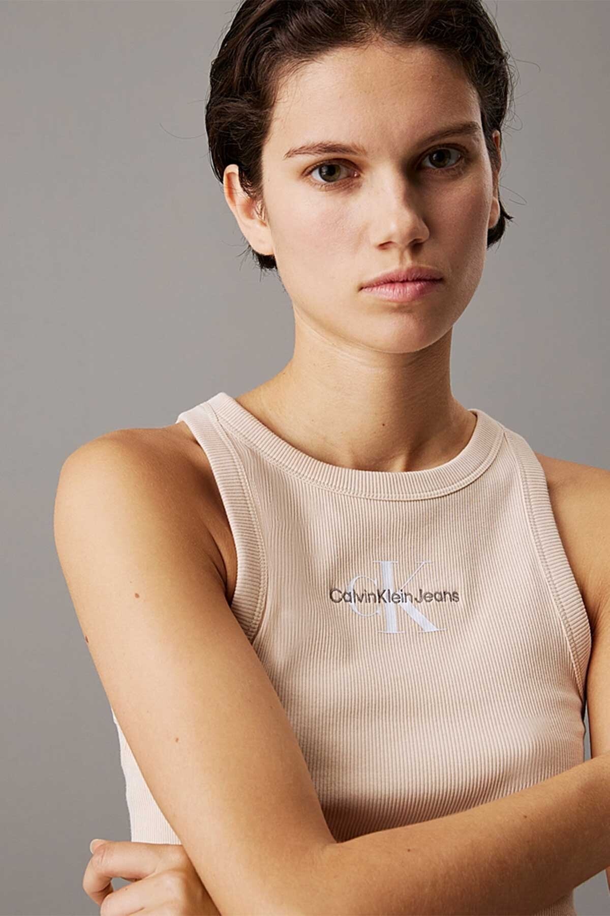 Kadın Monologo Rib Tank Top Bluz - Kum