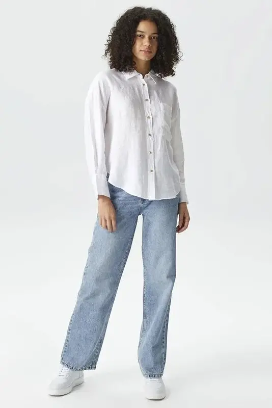 Kadın Oversize Uzun Kollu Gömlek - Beyaz