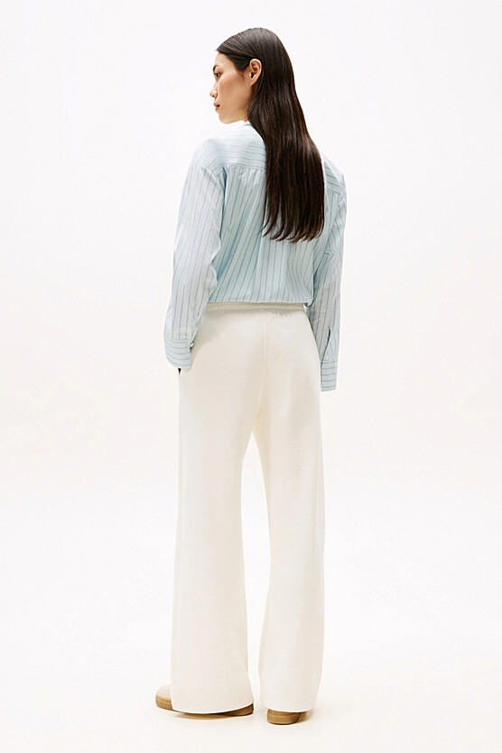Konfor ve şıklığı bir araya getiren bu eşofman altı, günlük stilinize modern bir dokunuş katıyor. Düz ve geniş paça kesimiyle rahat bir silüet sunarken, ön kısmındaki dikey dikiş detayı (nervür) bacak boyunu daha uzun göstererek tasarıma pantolon şıklığı kazandırır. Pike dokulu pamuk karışımlı kumaşı konfor sunarken, lastikli beli pratik bir kullanım sağlar. Üzerindeki minimalist yazı nakışı, tasarıma zarif bir imza atar. Hem spor ayyakkabılarla hem de günlük ayakkabılarla kolayca kombinleyebilirsiniz.