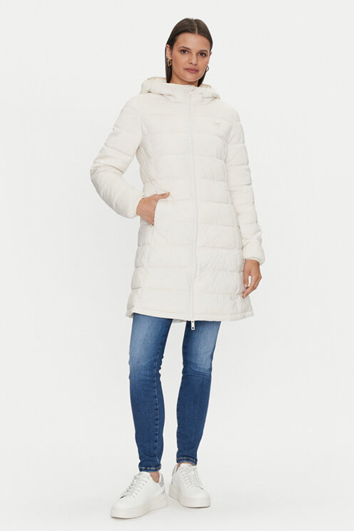 Kadın New Aleta Uzun Kesim Mont - Beyaz