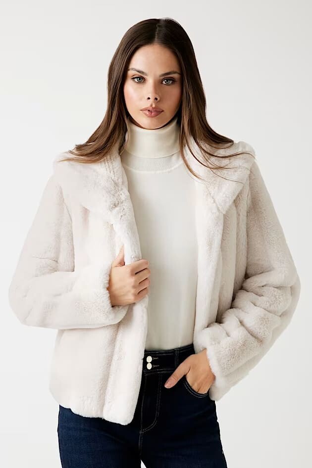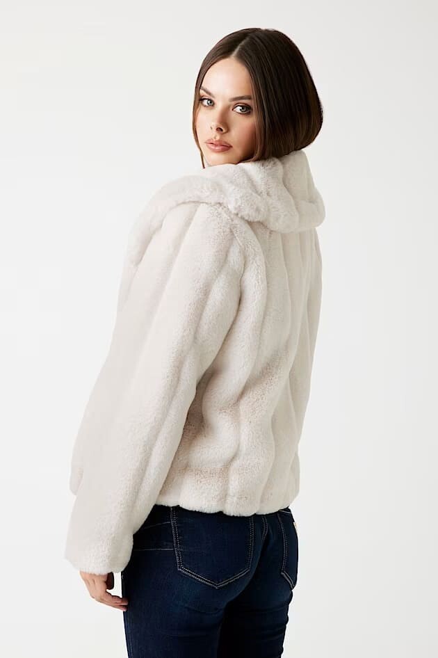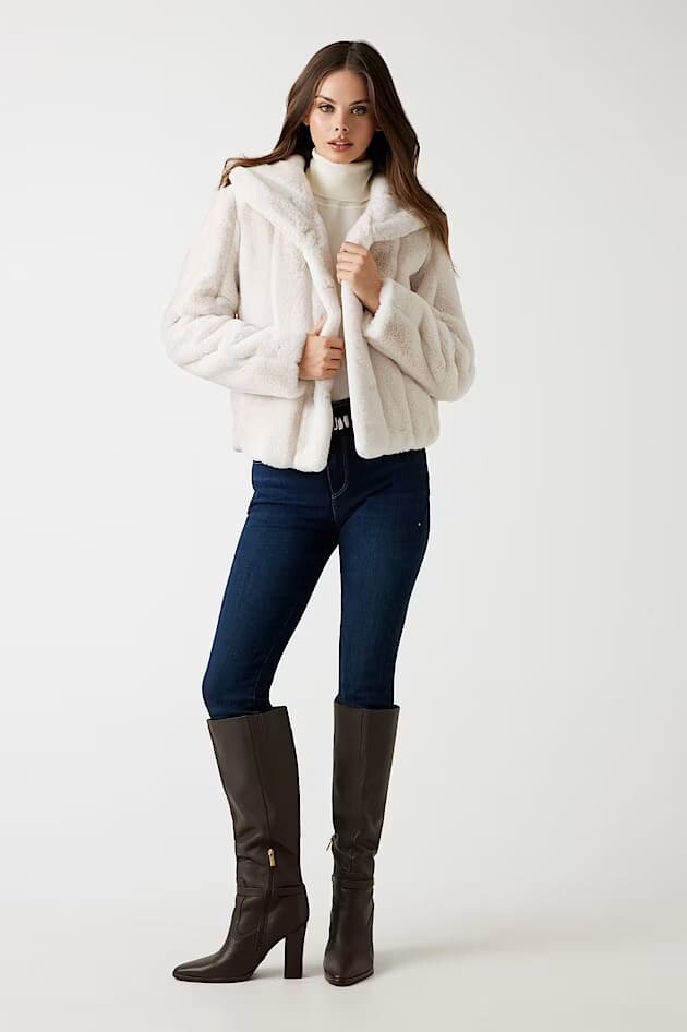 Soğuk havalara hem sıcaklık hem de göz alıcı bir stil katmak için tasarlanan bu pelüş ceket, lüks ve konforu bir araya getiriyor. Yumuşacık suni kürk dokusu, kendinden çizgili deseniyle modern bir görünüm sunarken, geniş şal yakası tasarıma zarif ve sofistike bir hava katar. Gizli kancalı kapaması, ceketin ön kısmında pürüzsüz bir bütünlük sağlar. Jean pantolonlarla gündelik bir şıklık yaratmak veya elbiselerin üzerine alarak özel anlara hazırlanmak için mükemmel bir dış giyim parçasıdır.