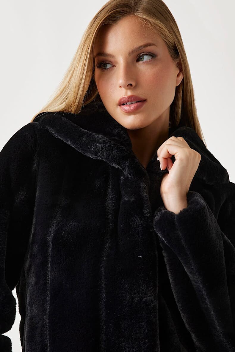Soğuk havalara hem sıcaklık hem de göz alıcı bir stil katmak için tasarlanan bu pelüş ceket, lüks ve konforu bir araya getiriyor. Yumuşacık suni kürk dokusu, kendinden çizgili deseniyle modern bir görünüm sunarken, geniş şal yakası tasarıma zarif ve sofistike bir hava katar. Gizli kancalı kapaması, ceketin ön kısmında pürüzsüz bir bütünlük sağlar. Jean pantolonlarla gündelik bir şıklık yaratmak veya elbiselerin üzerine alarak özel anlara hazırlanmak için mükemmel bir dış giyim parçasıdır.