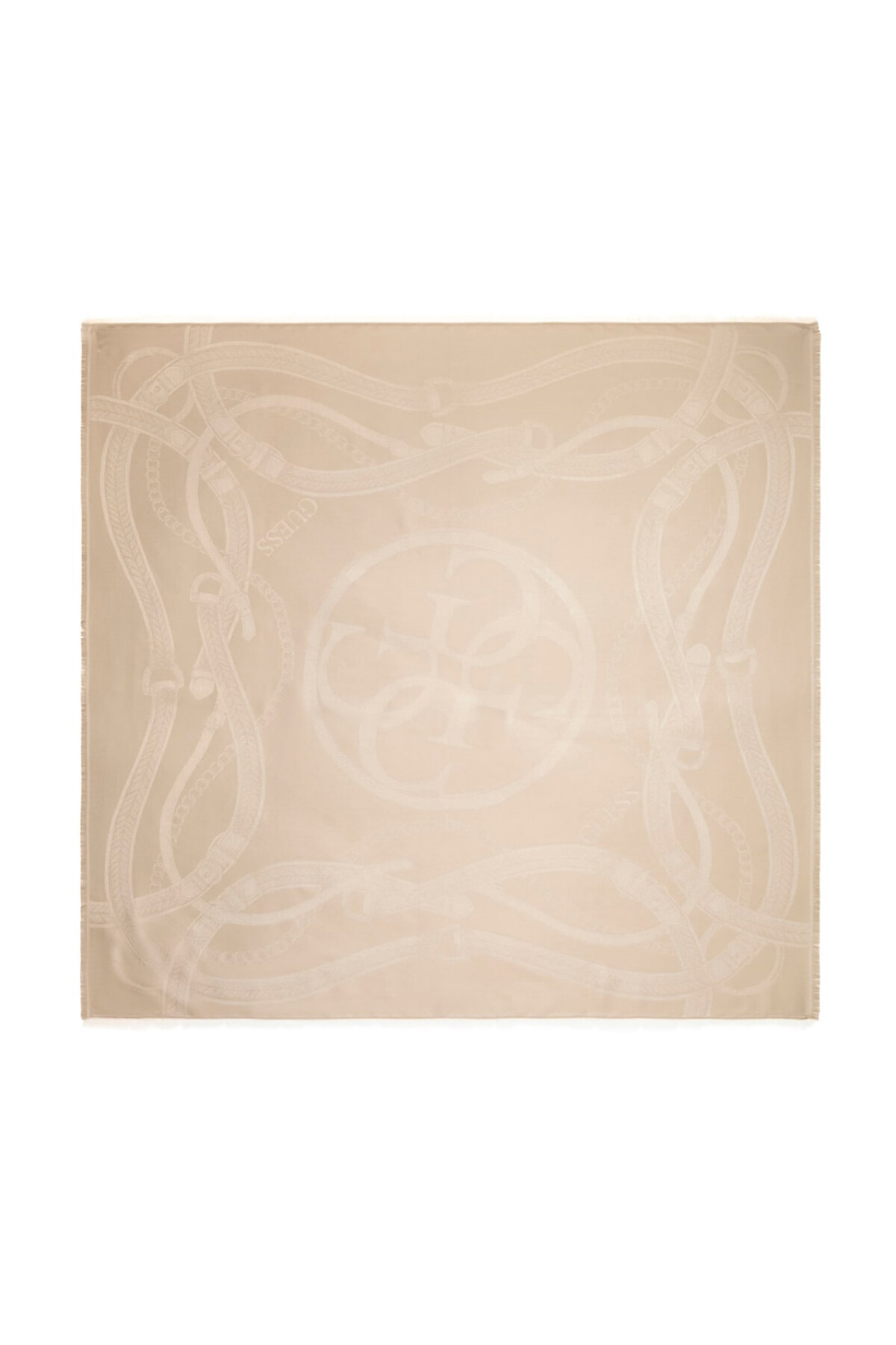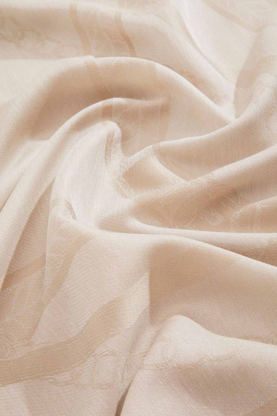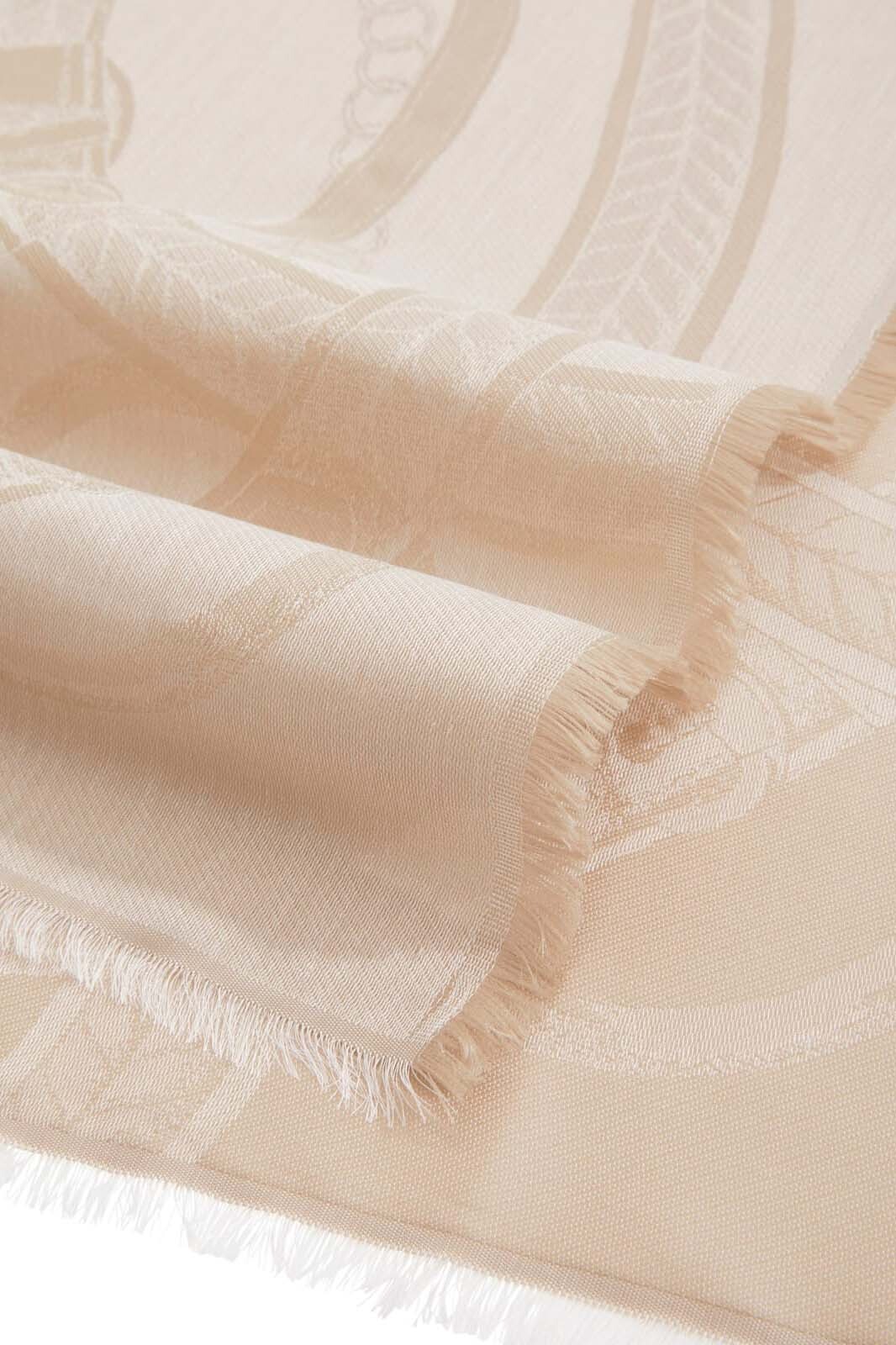 Zarif dokusu ve sofistike desenleriyle öne çıkan bu eşarp, stilinize prestijli bir dokunuş katıyor. %56 polyester ve %44 modal karışımından oluşan özel kumaş yapısı, modallın ipeksi yumuşaklığını polyesterin dayanıklılığı ile birleştirerek uzun ömürlü ve konforlu bir kullanım sunuyor. Bej zemin üzerine uygulanan tonal jakar desenler; kemer, zincir ve kilit motifleriyle zenginleştirilmiş karakteristik bir estetik sergiliyor. Kenarlarındaki ince kirpik püskül detayları tasarıma modern bir hava katarken, geniş ebatları sayesinde farklı bağlama stilleriyle çok yönlü bir kullanım imkanı sağlıyor.