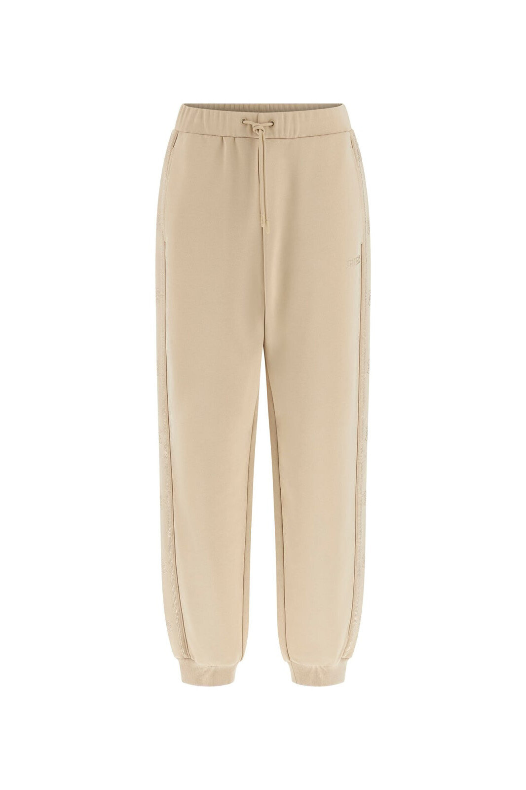 Renginin yumuşak ve doğal toprak tonunu, modern jogger silüetiyle buluşturan Octavia eşofman altı, sportif şıklığı şehir hayatına taşıyor. %86 polyester, %8 viskoz ve %6 elastan karışımından oluşan teknik kumaşı, viskozun sunduğu yumuşak dokunuşu polyesterin dayanıklılığıyla birleştirerek formunu koruyan tok bir yapı sunuyor. Tasarımın en dikkat çekici özelliği olan yan bacak boyunca uzanan kabartmalı logo şeritleri, kumaşla aynı tonda tasarlandığı için sade ama lüks bir görünüm sergiliyor. Ayarlanabilir büzgü ipli elastik bel bandı ve bilekleri saran ribana manşetler, gün boyu ideal bir oturuş ve hareket özgürlüğü sağlıyor.